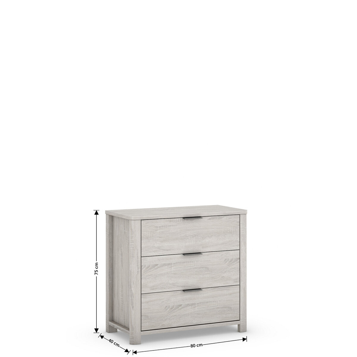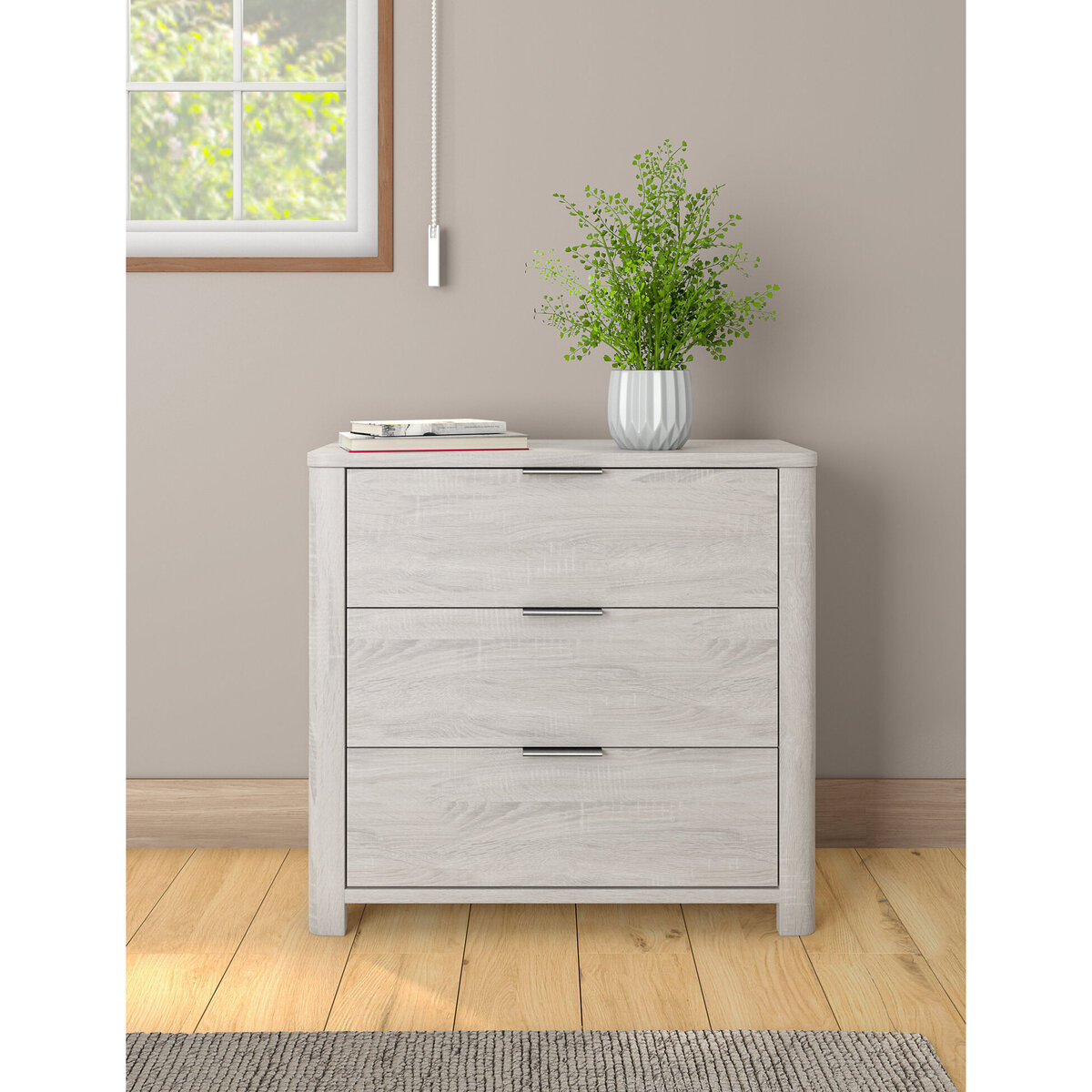 Smarten up bedrooms and other living spaces with this three-drawer chest from the Cora collection. Featuring an oak-effect finish and contemporary styling, the minimalist design will bring an up-to-date feel to your interior. Gently rounded corners soften its shape and are ideal for homes with small children.