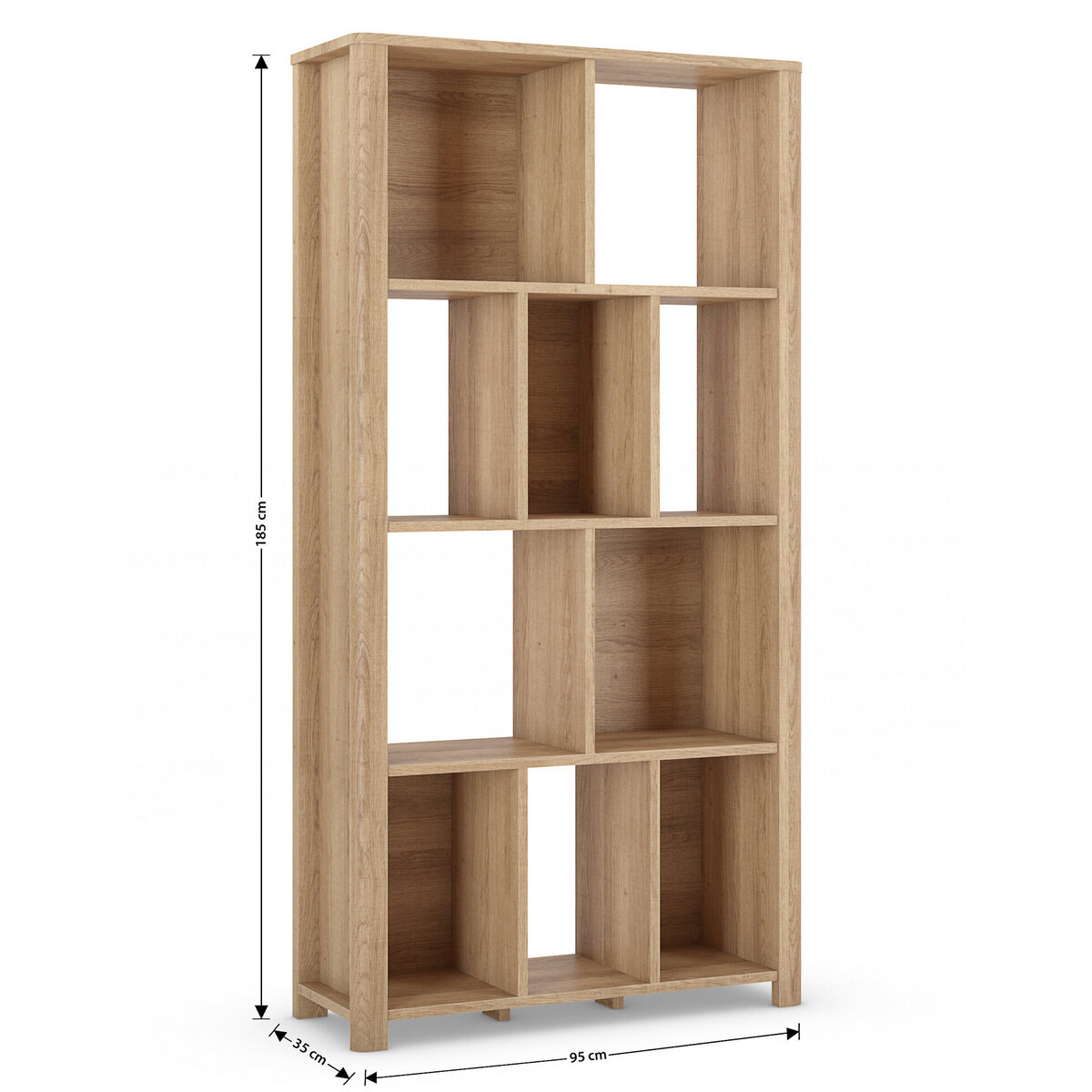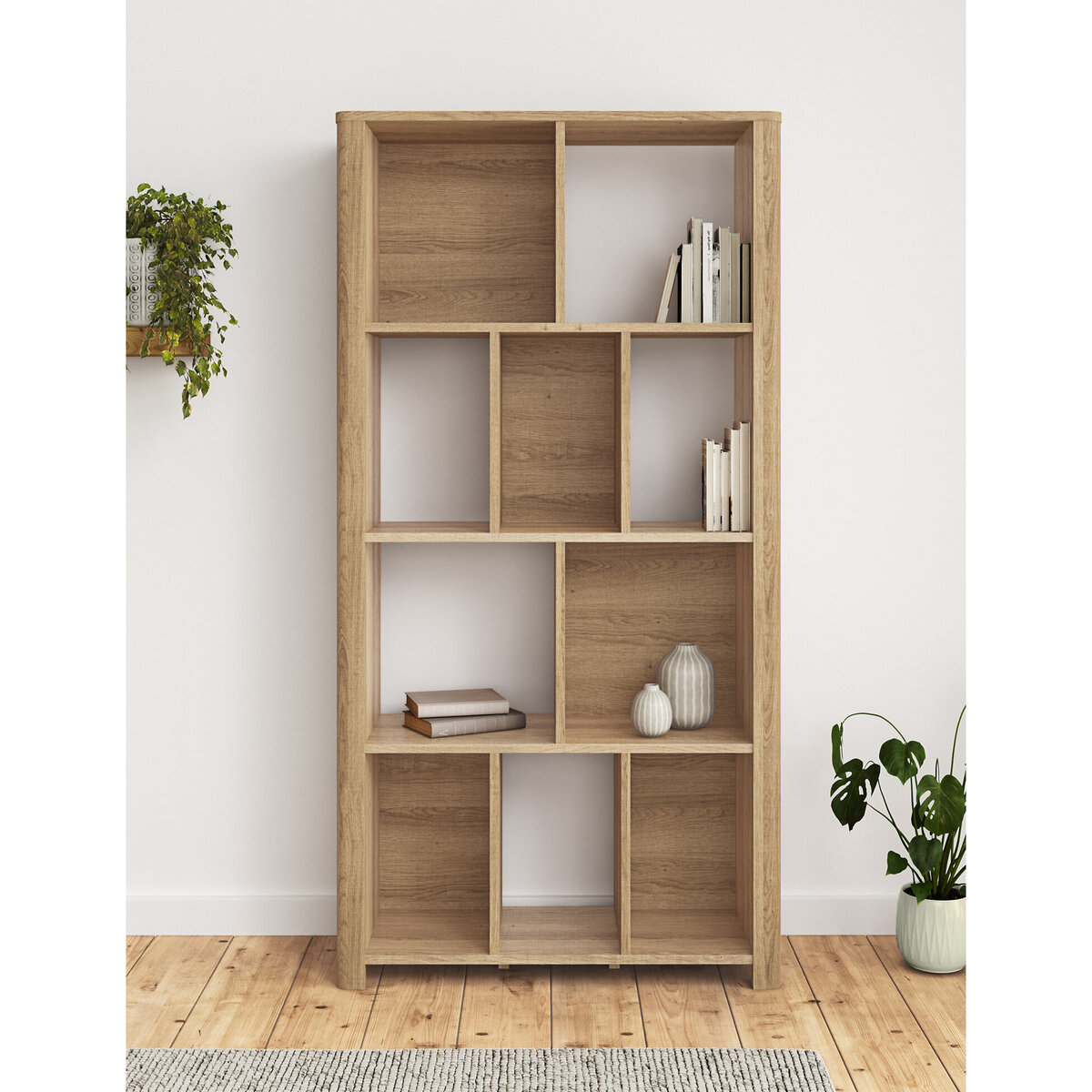 Keep your books pride of place on our contemporary Cora bookcase. This tall piece has stylish clean lines and a mix of ten open and closed sections for a modern feel and plenty of room. With its natural oak-effect finish, it will suit a range of interior decors. Matching pieces are available in the full Cora range.