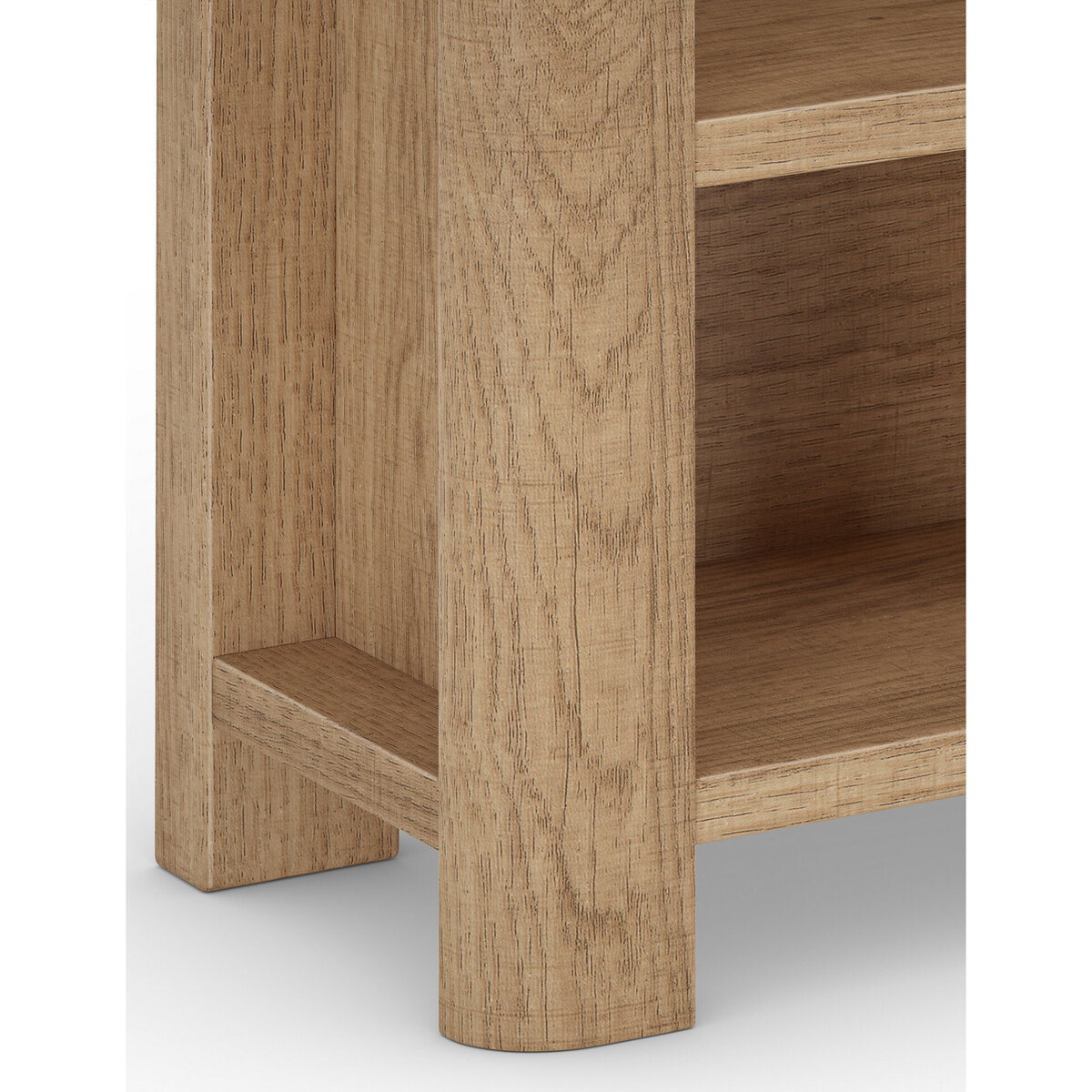 Make the most of every inch of your living space with the Cora corner TV unit. Its contemporary, oak-effect design and simple, clean lines make it ideal for modern interiors. It features three open-backed upper shelves for easy gadget installation, plus two closed-back shelves and a generously sized storage drawer below. Browse our full Cora range for coordinating pieces.