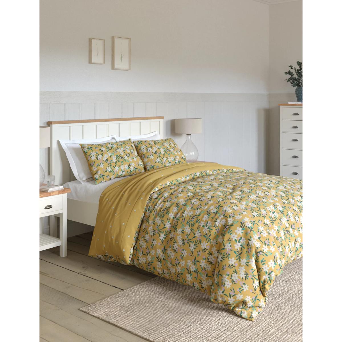 M&S Cotton Blend Daisy Print Bedding Set - 6FT - Ochre, Ochre