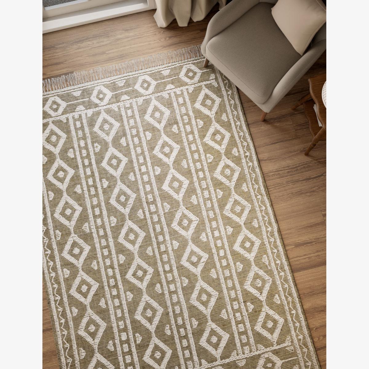 This cotton-blend rug is crafted with jute and wool for durability and natural softness. Its rectangular shape showcases a geometric, diamond-woven design that's perfect for introducing understated pattern to any space. Tassel detailing on the edge adds to the textured look.