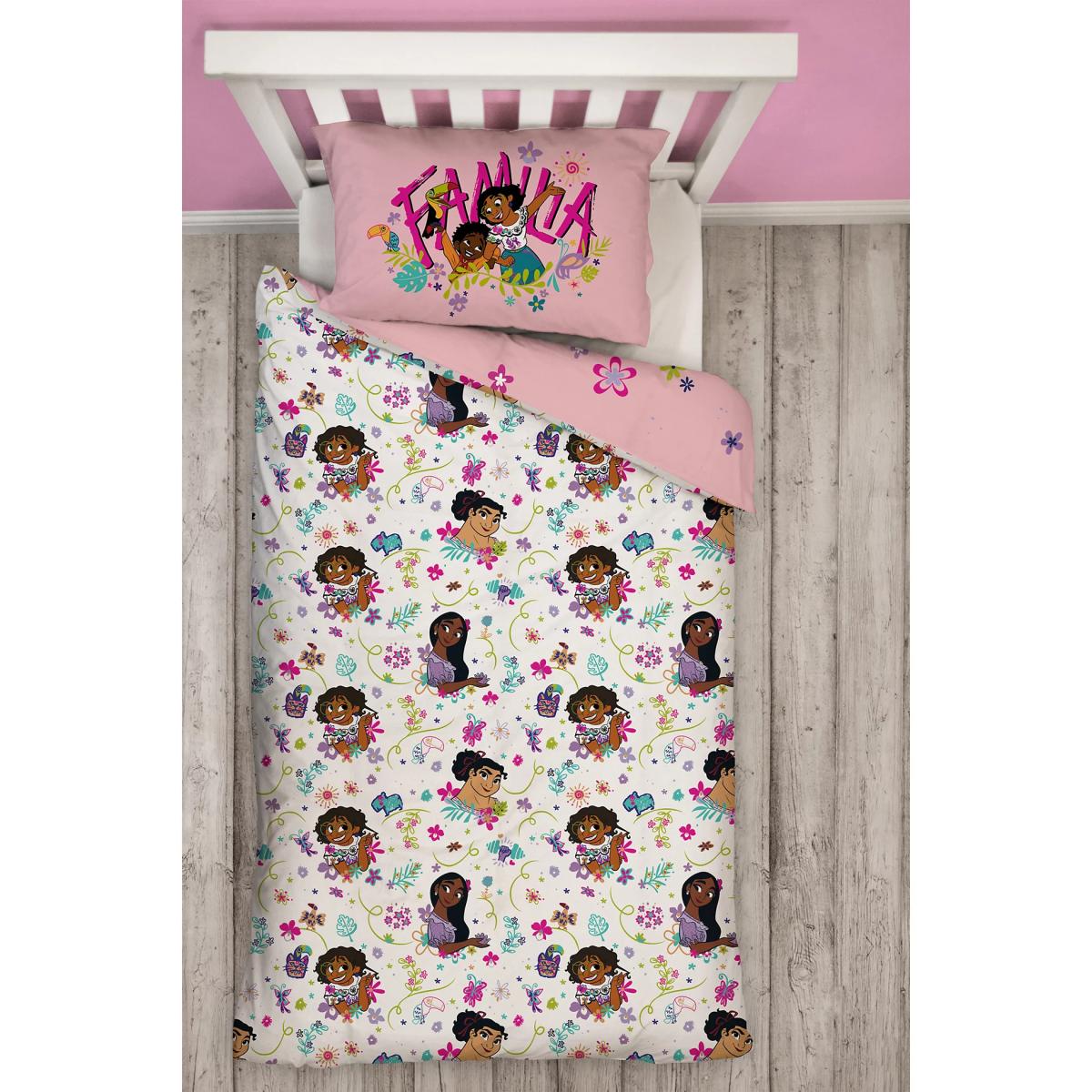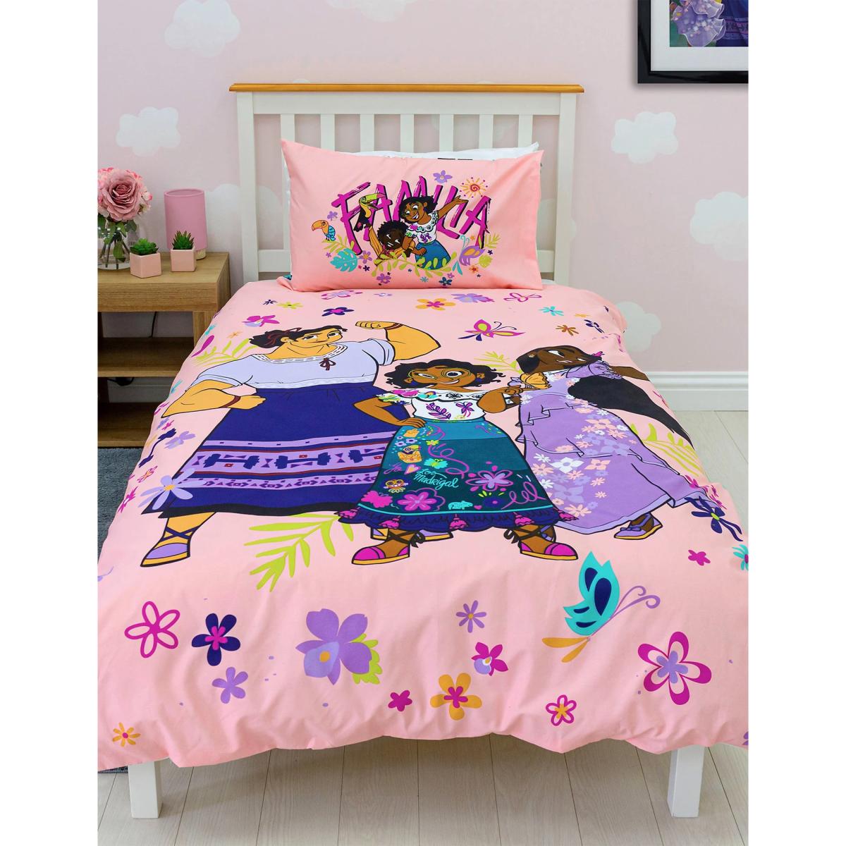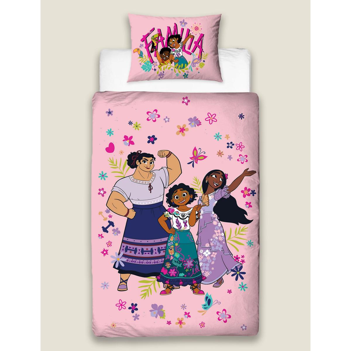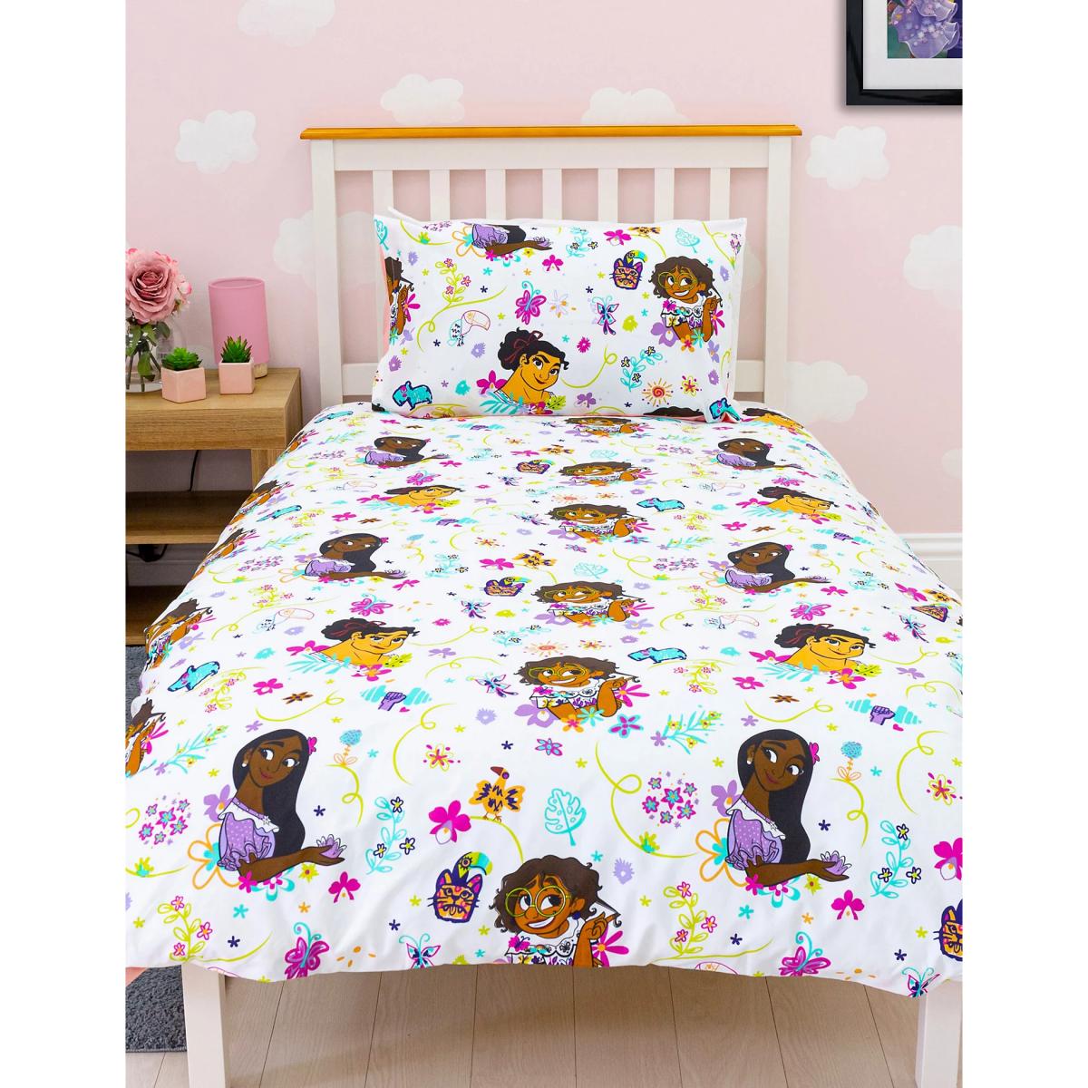 Bring some Madrigal magic to bedtime with this cotton-blend Disney Encanto™ set. It comprises one single duvet and one pillowcase. The cover is reversible, with both sides featuring Mirabel, Luisa and Isabela as well as colourful florals and motifs from the film.