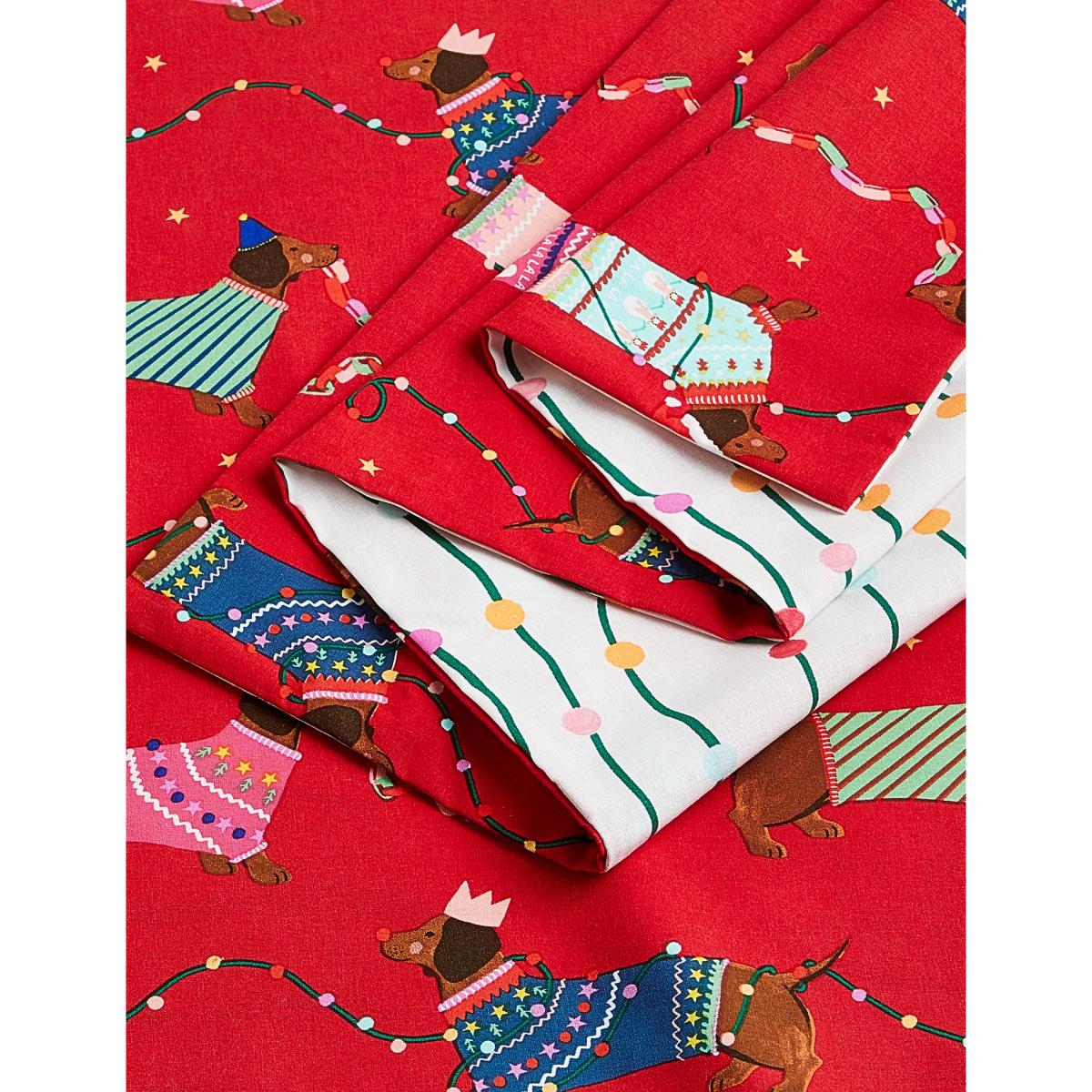 M&S Cotton Blend Festive Sausage Dogs Bedding Set - 5FT - Red, Red