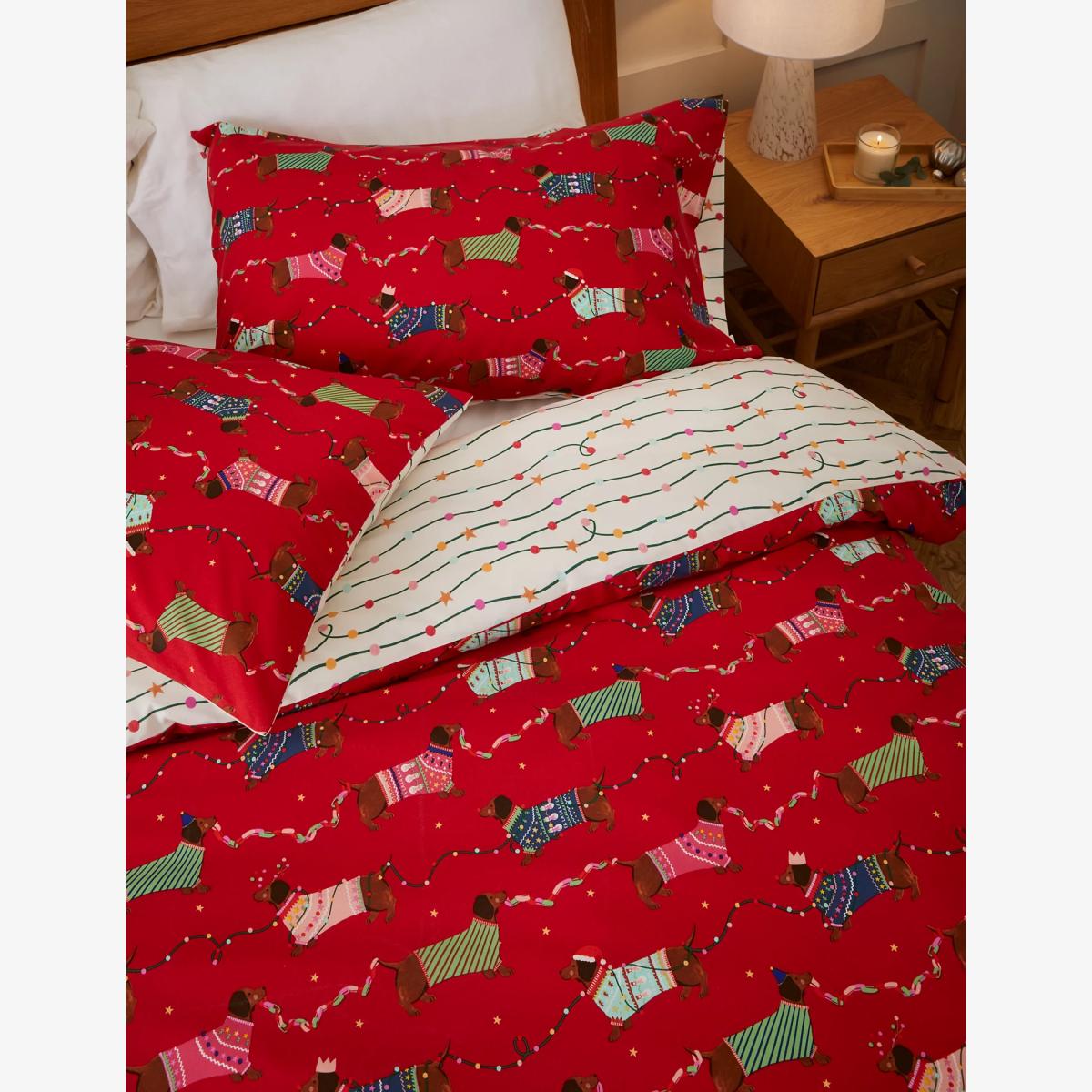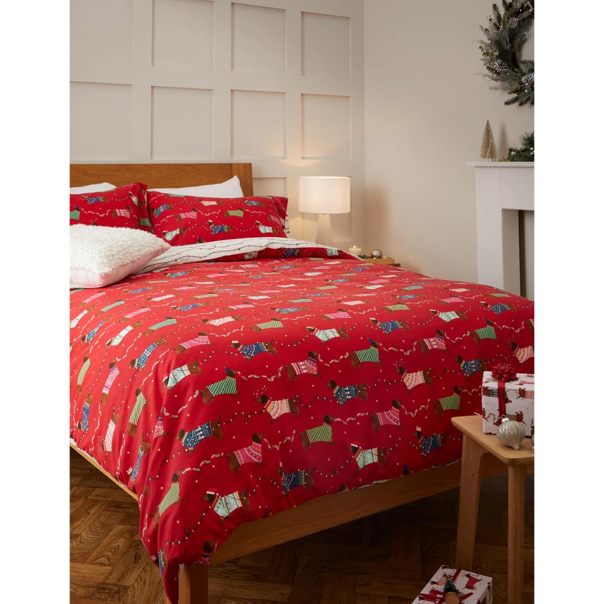 M&S Cotton Blend Festive Sausage Dogs Bedding Set - 6FT - Red, Red