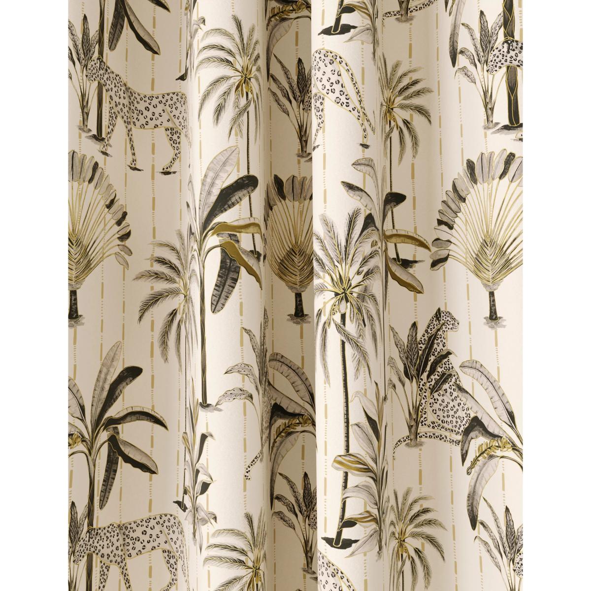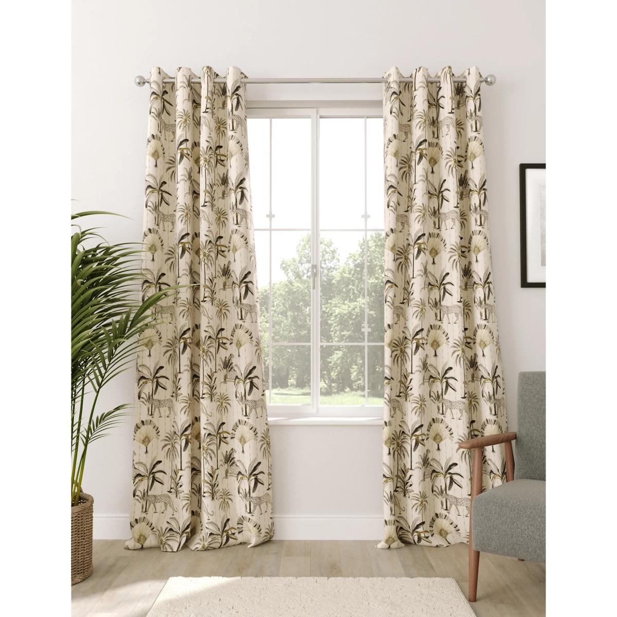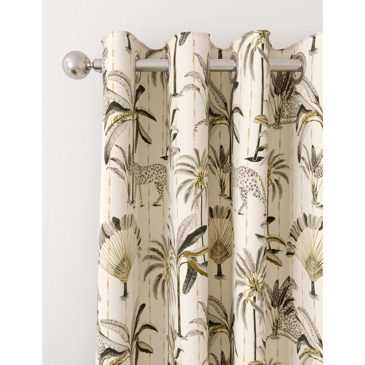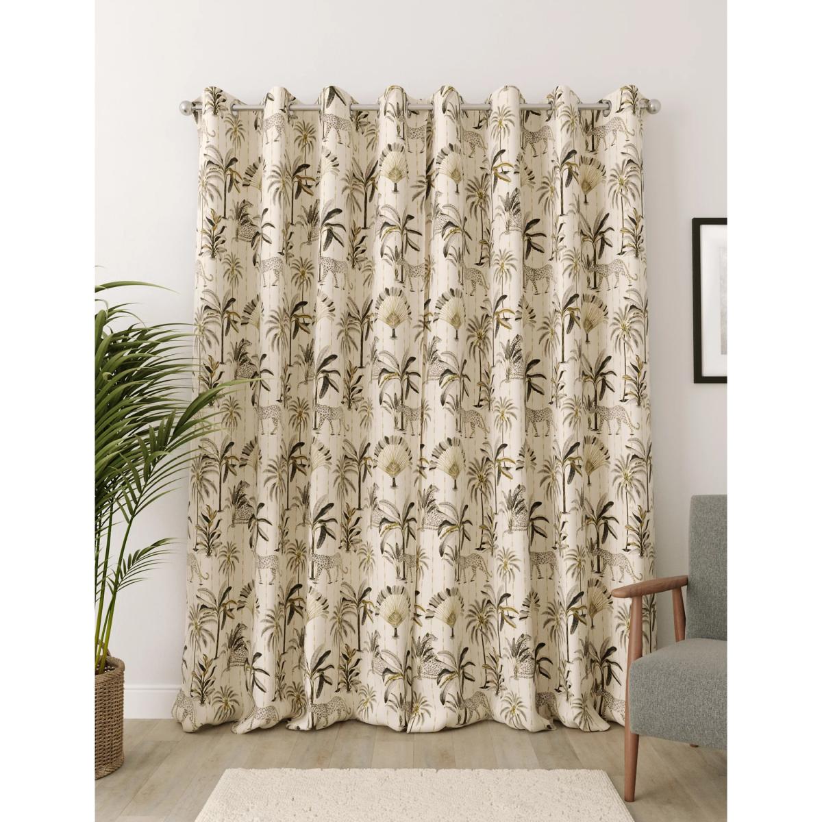 Bring a touch of the exotic into your home with these modern leopard and palm print curtains. They feature metallic eyelets for quick and easy hanging, and the cotton-mix fabric has a blackout finish for total privacy.