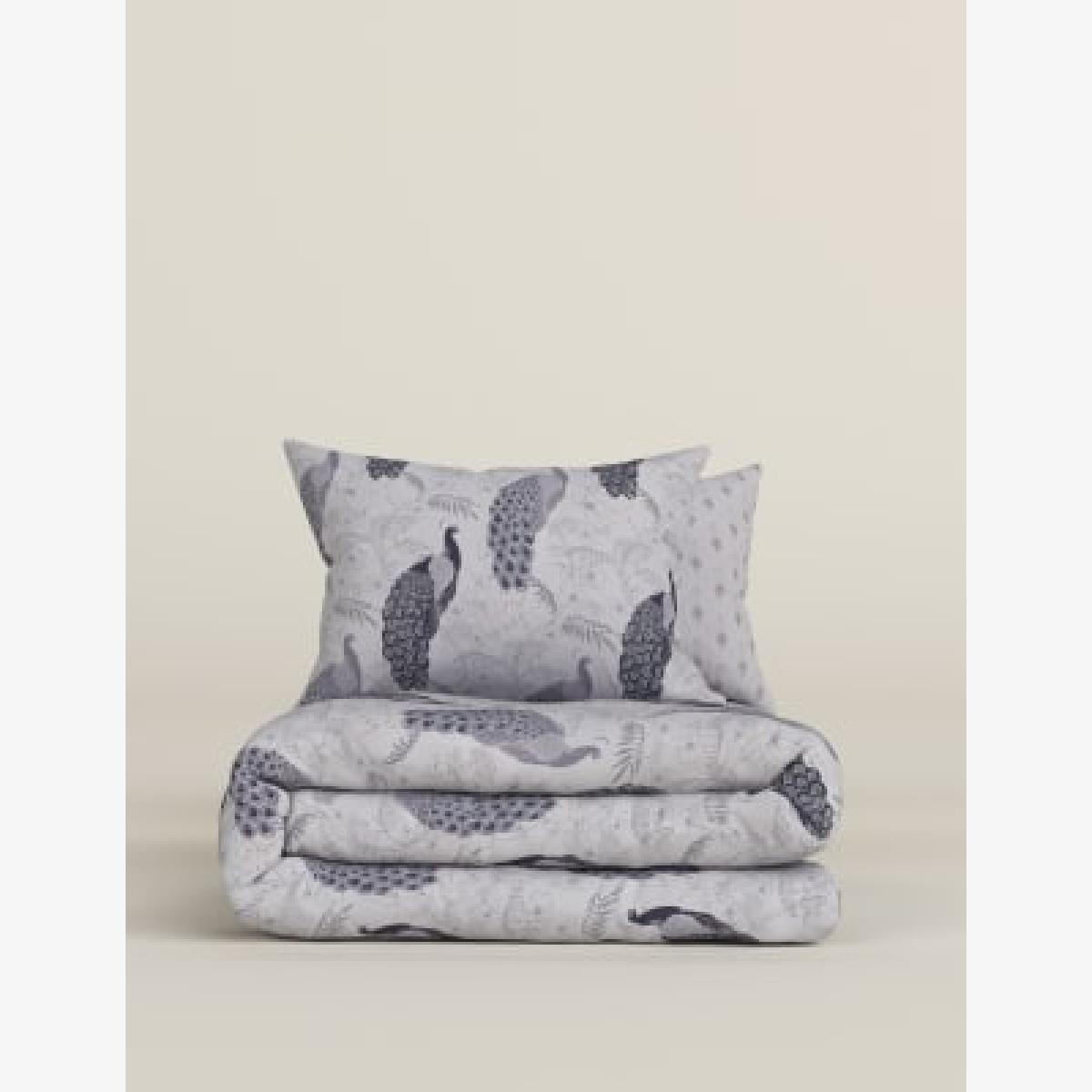 M&S Cotton Blend Peacock Bedding Set - 6FT - Grey Mix, Grey Mix