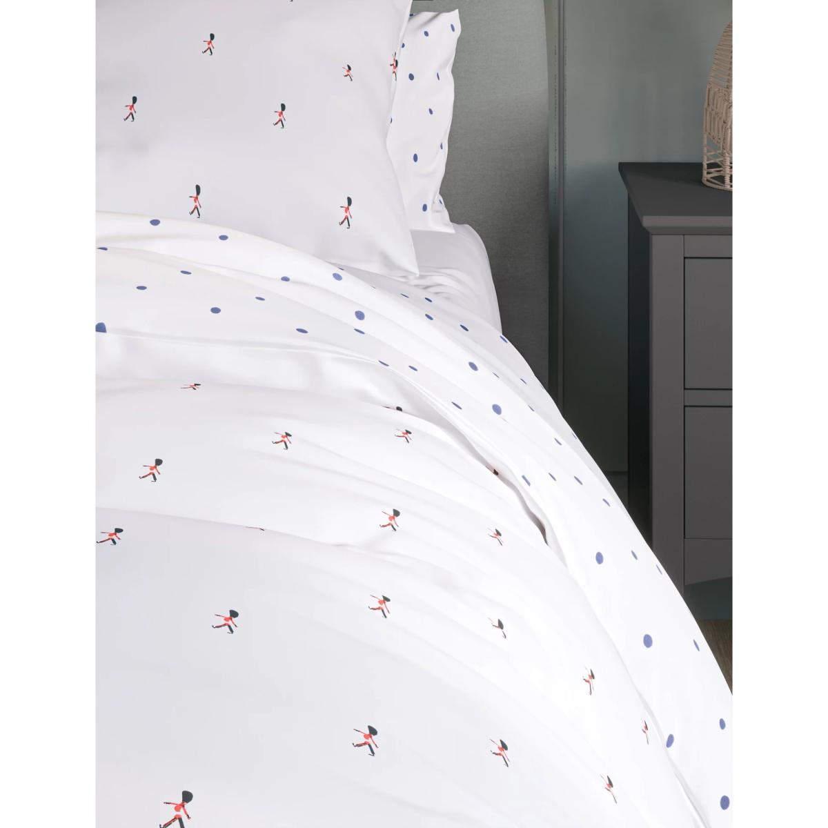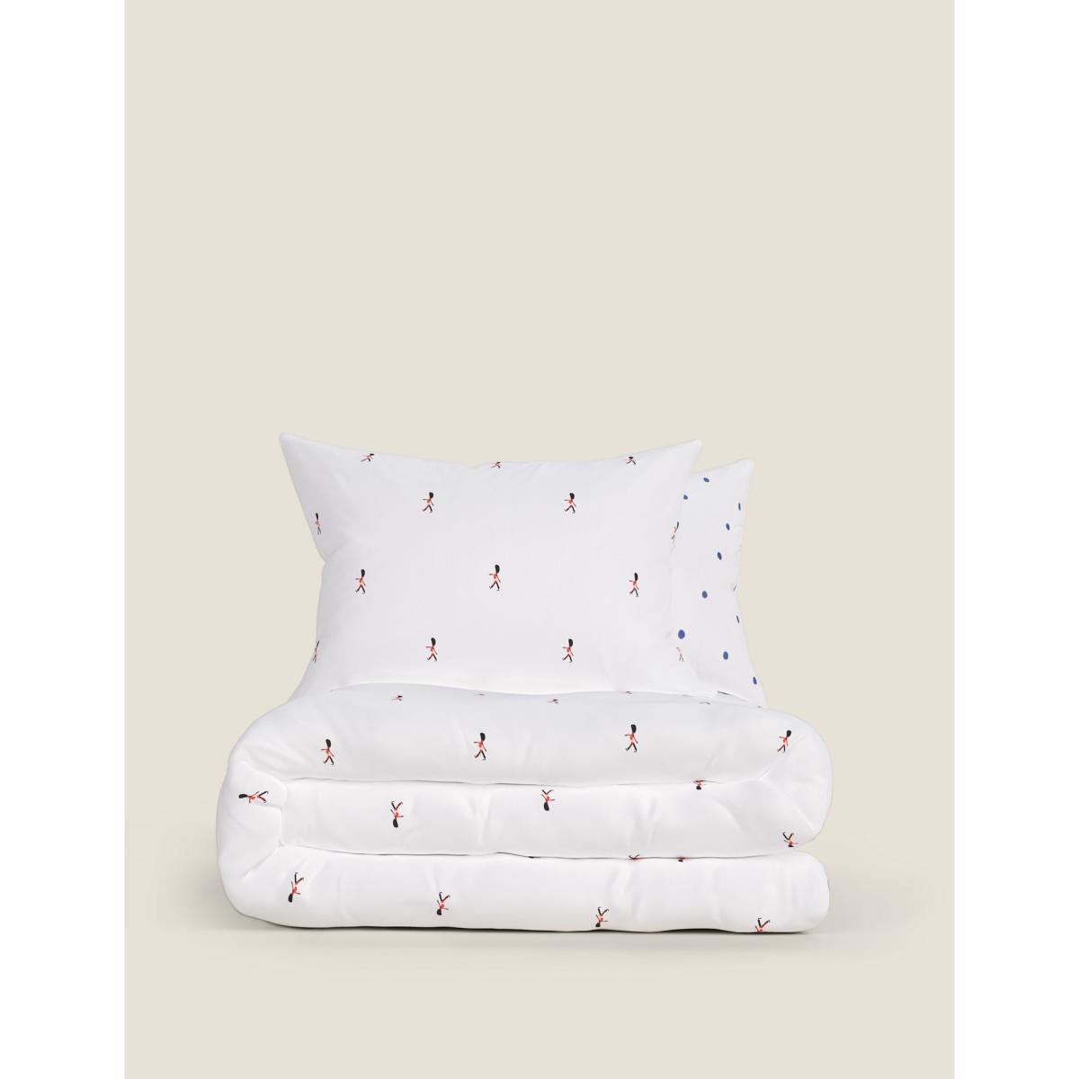 Ensure your bedding is fit for a king or queen with this royalty-themed bedding set. Crafted from a soft, breathable cotton blend, it features a Queen's Guard repeat pattern on the front, and a blue spotty reverse. This set is completed with a subtle button fastening.