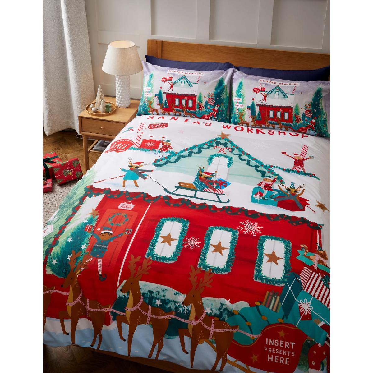 M&S Cotton Blend Santa's Workshop Bedding Set - 5FT - Red Mix, Red Mix