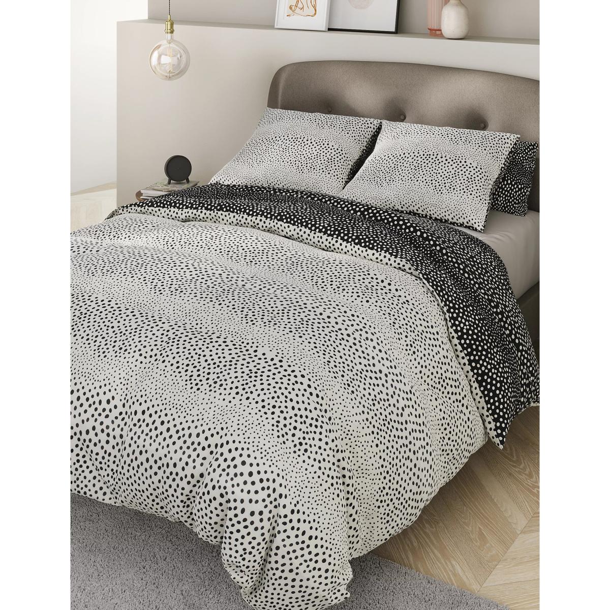 I really like this spotty bedding set because it’s versatile and easy to incorporate into various interiors. Its neutral palette makes it an ideal choice for both contemporary and traditional schemes, especially in bedrooms with monochrome or minimalist themes. The cotton blend fabric also ensures comfort and ease of care, which is always a plus. To style it effectively, consider pairing it with simple, solid-coloured accessories-such as plain cushions or throws in muted tones-to let the spotty pattern stand out. For a more playful look, you could add a few contrasting accent colours through cushions or curtains. This bedding works particularly well in more relaxed, casual bedrooms but can be dressed up with luxe textures for a more sophisticated vibe.