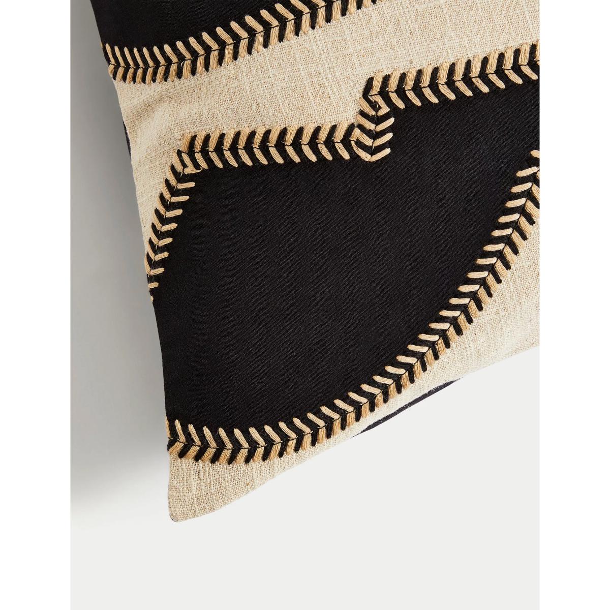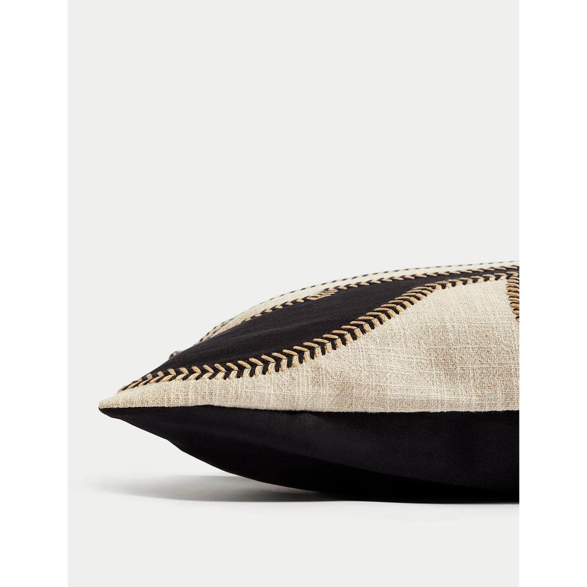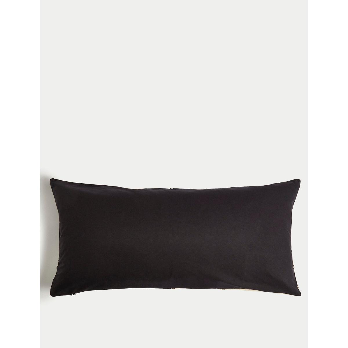 M&S Cotton Embroidered Bolster Cushion with Linen - Black Mix, Black Mix