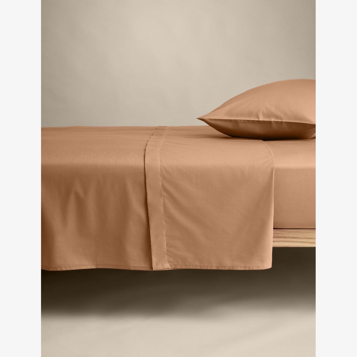 I love this cotton-rich sheet in caramel for its versatile, neutral hue that adds warmth to any bedroom. It’s a great choice for those looking to create a cosy, understated look or to complement a range of colour schemes, from muted tones to more vibrant accents. Its cotton blend ensures comfort and durability, making it practical for everyday use. To style it effectively, pair it with textured cushions or throws in complementary colours like taupe or soft greys for a layered, welcoming feel. It works particularly well in modern or minimalist interiors, but can also add a touch of softness to more traditional or rustic spaces when styled with natural wood or linen accessories.