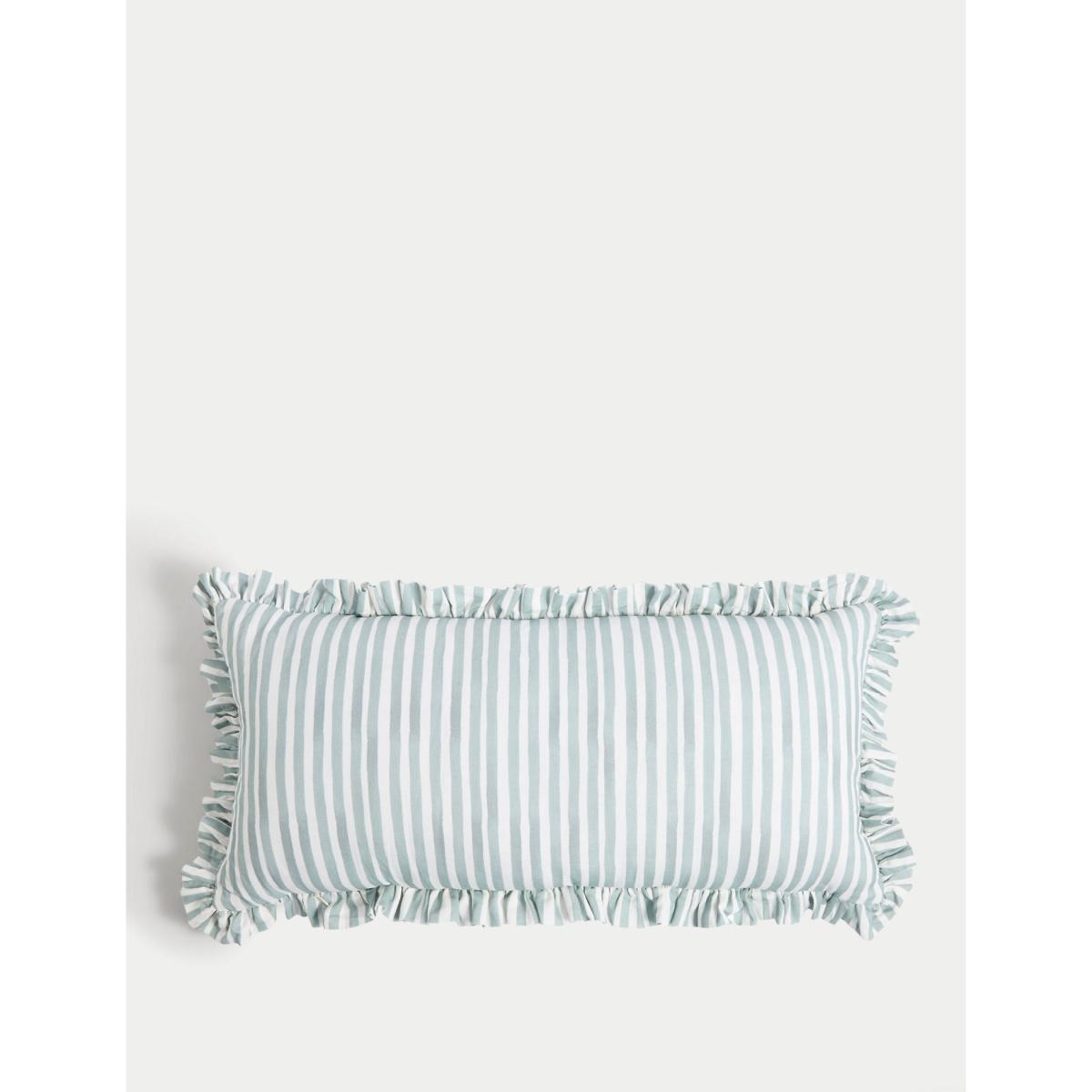 M&S Cotton Rich Leaf & Striped Bolster Cushion - Green Mix, Green Mix
