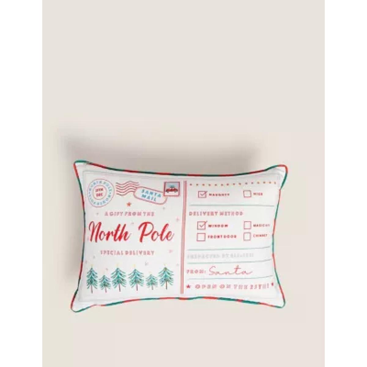 M&S Cotton Rich Letters To Santa Bolster Cushion - Red Mix, Red Mix
