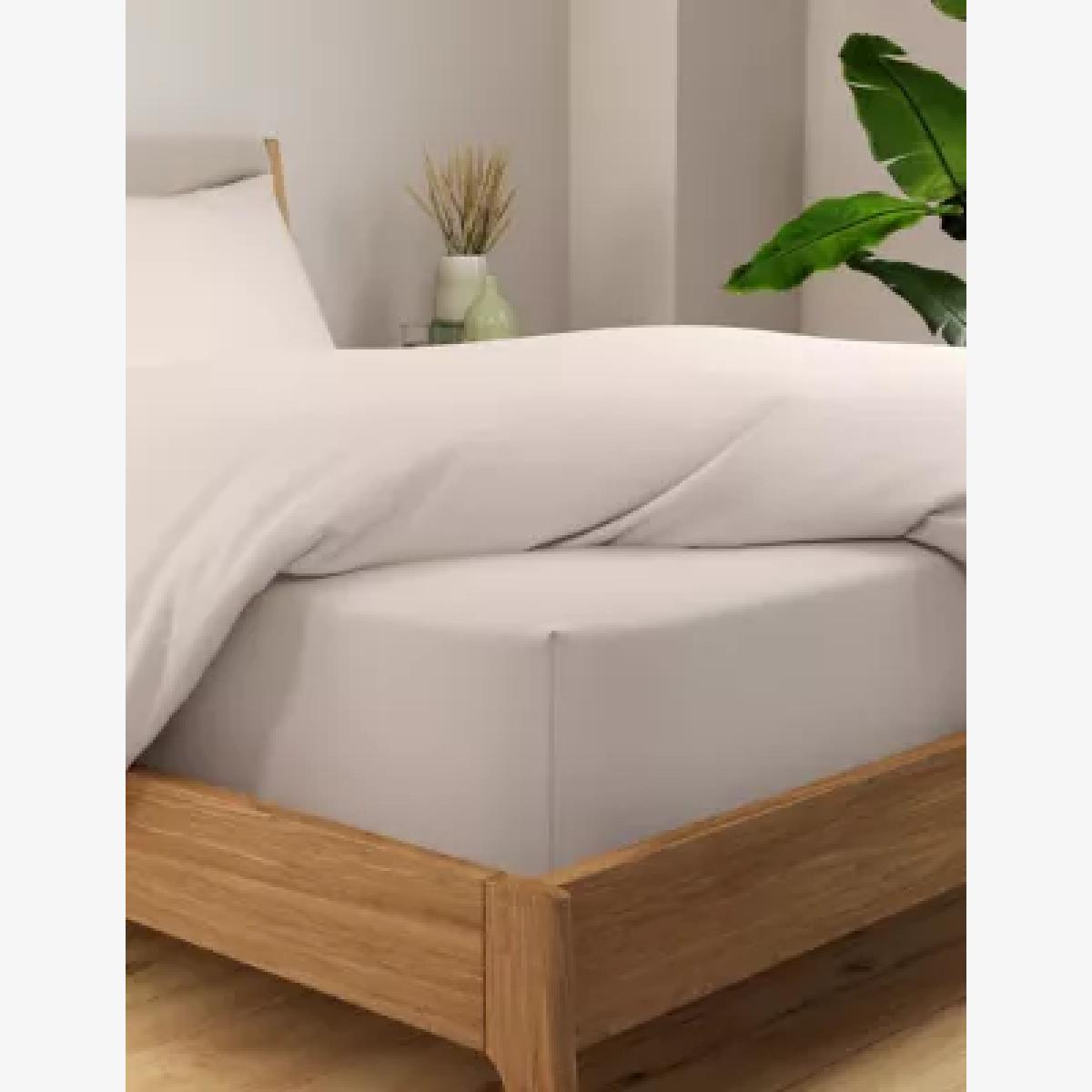 I love this bed sheet for its practical yet versatile appeal, perfect for adding a subtle touch of colour to a neutral bedroom or complementing a layered, textured bedding scheme. The light putty colour is especially adaptable-it works well in contemporary, minimalist interiors as a soft neutral but can also bring a warm, inviting feel to more traditional or rustic setups. Its cotton-rich percale fabric ensures durability and crispness, making it a great choice for everyday comfort. Styling tip: pair it with crisp white or tonal bedding and add textured throws or cushions to enhance its understated elegance. Since it's an extra deep fit, it’s also practical for thicker mattresses, ensuring a neat and tidy finish without slipping. This sheet offers both style flexibility and everyday functionality, making it a staple for many interiors.