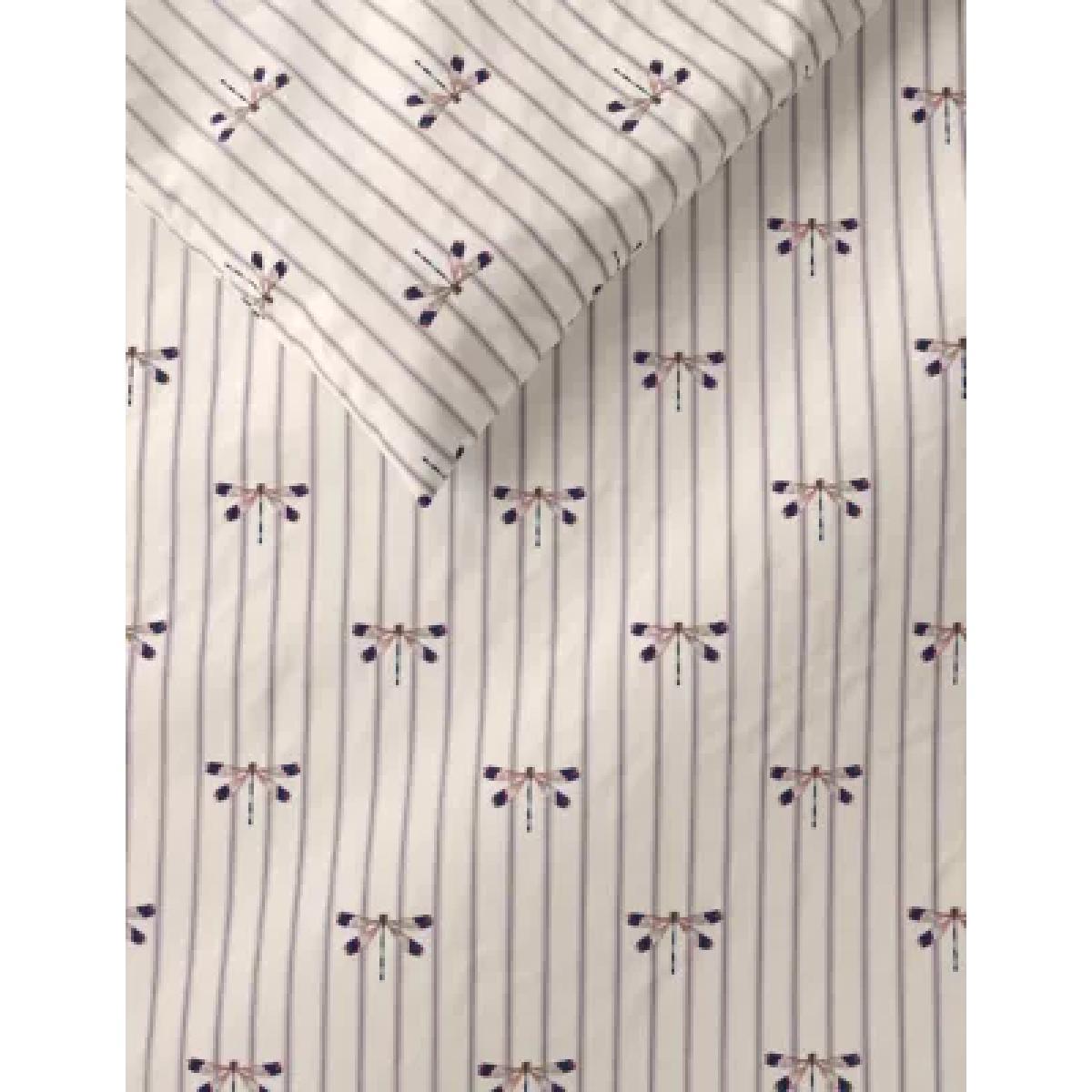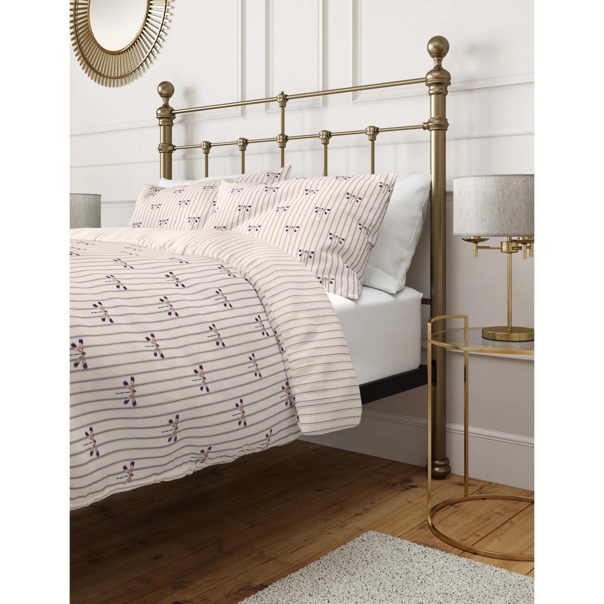 Uplift your bedroom with this bedding set, made from cotton-rich fabric for a cool and comfortable night's sleep. It's decorated with a contemporary pattern of stripes and dragonflies.