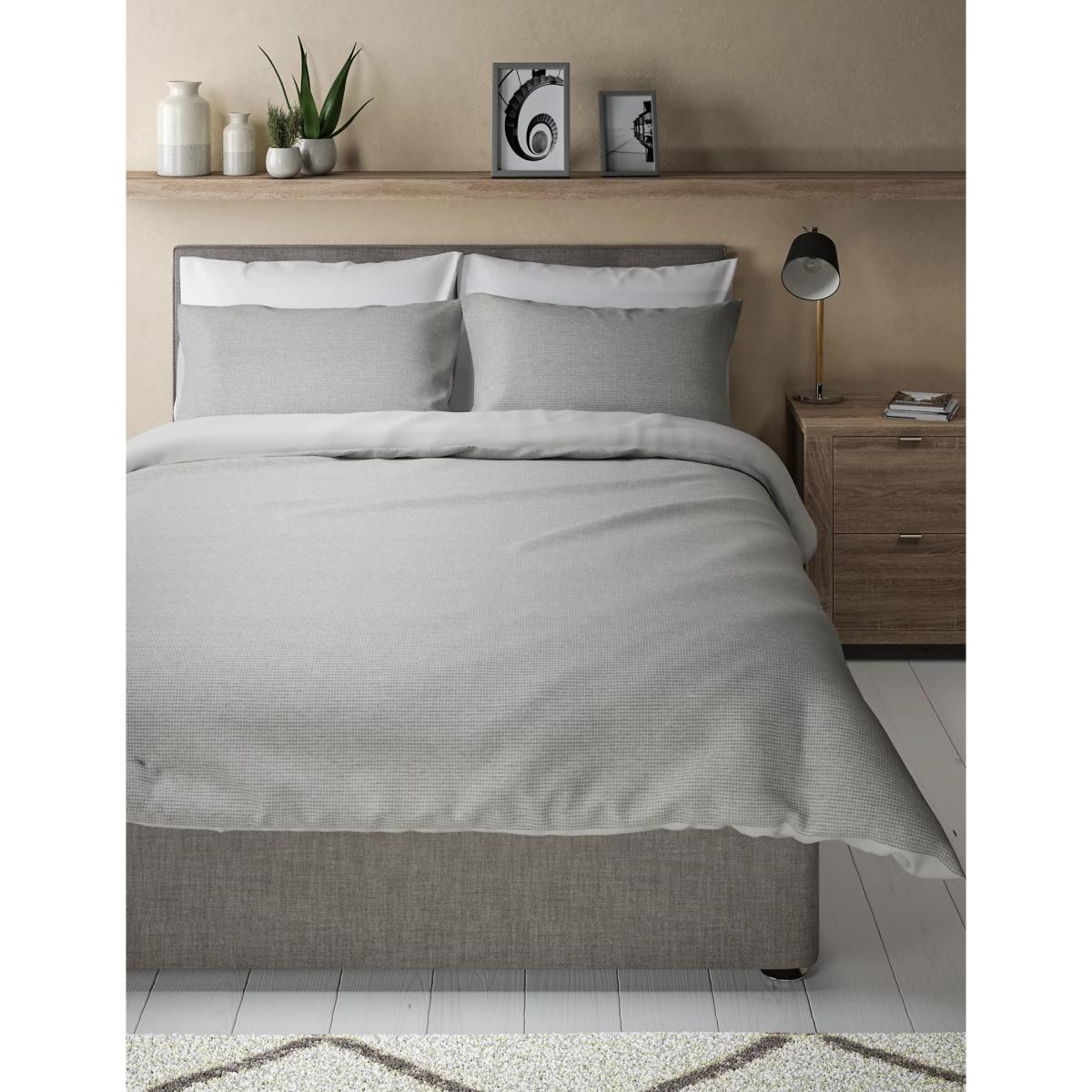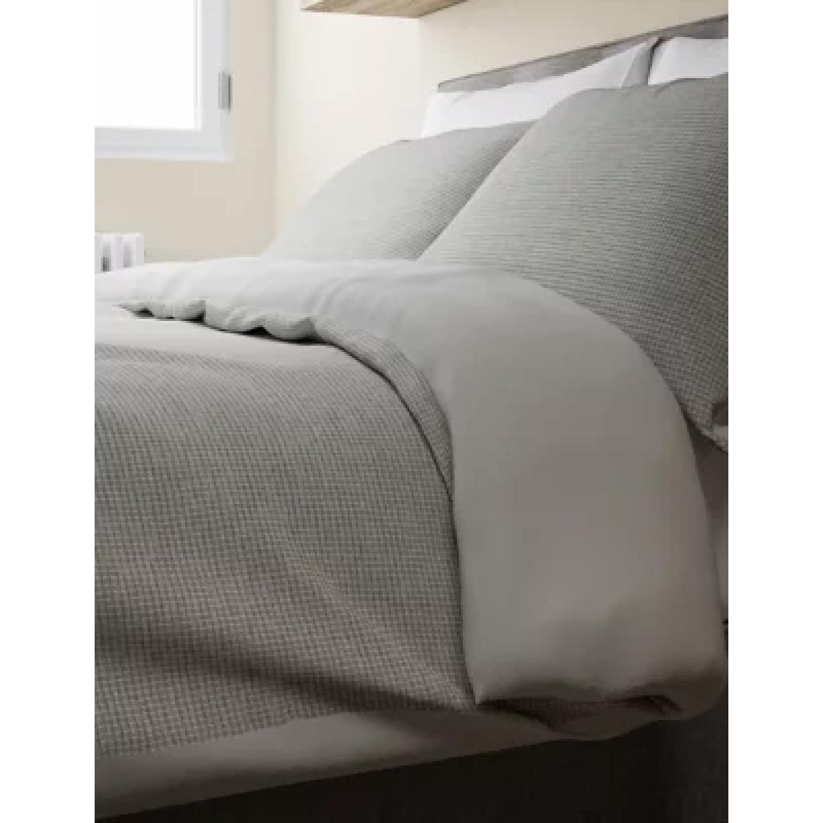 M&S Cotton Rich Waffle Bedding Set - 6FT - Grey, Grey