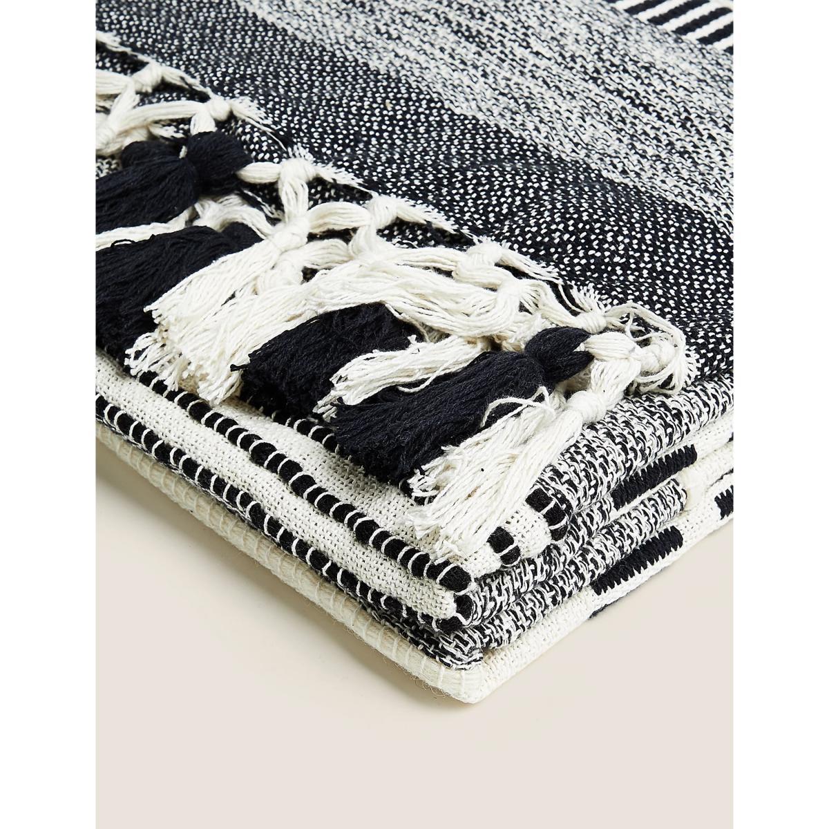 I love the M&S cotton-rich woven monochrome stripe throw for its versatile and timeless design, which easily complements a range of interiors from modern minimalist to more cosy, traditional schemes. Its neutral colour palette and understated stripe pattern make it a flexible layering piece that adds texture without overwhelming the space. It works particularly well styled over a neutral sofa or bed to introduce subtle pattern and warmth. Practical tips include draping it casually for a relaxed vibe or folding it neatly at the end of the bed for a polished look; its lightweight cotton construction also makes it perfect for year-round use or as an extra layer on chilly evenings.
