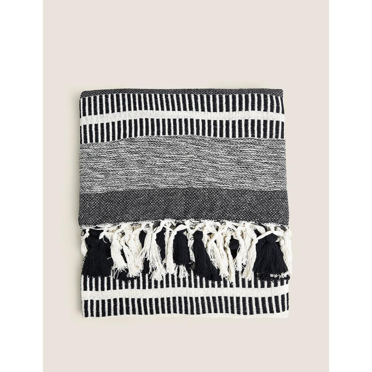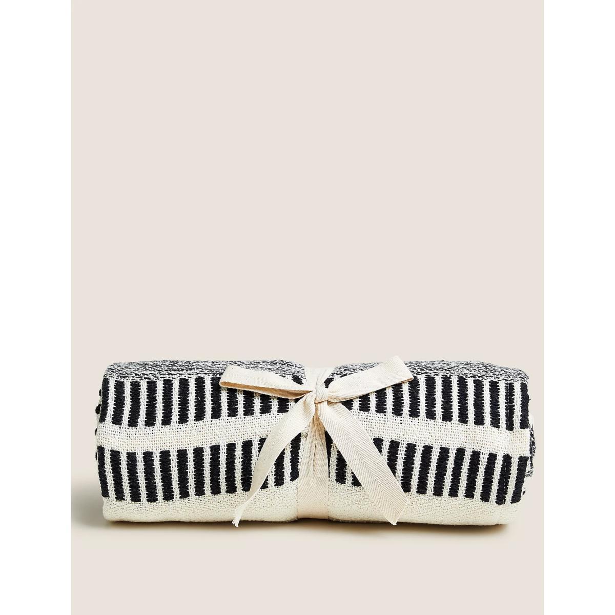 M&S Cotton Rich Woven Monochrome Stripe Throw - Cream Mix, Cream Mix,Ochre