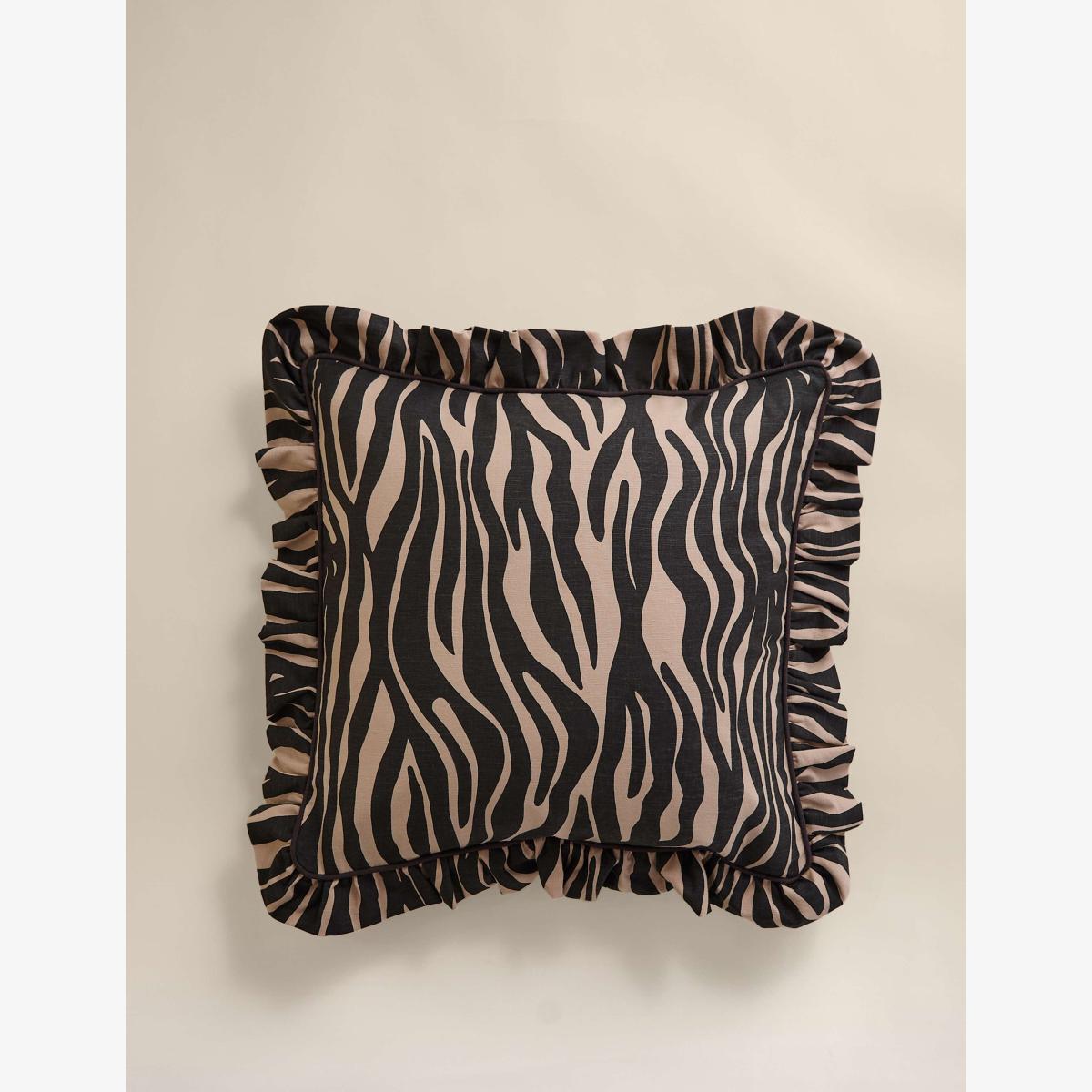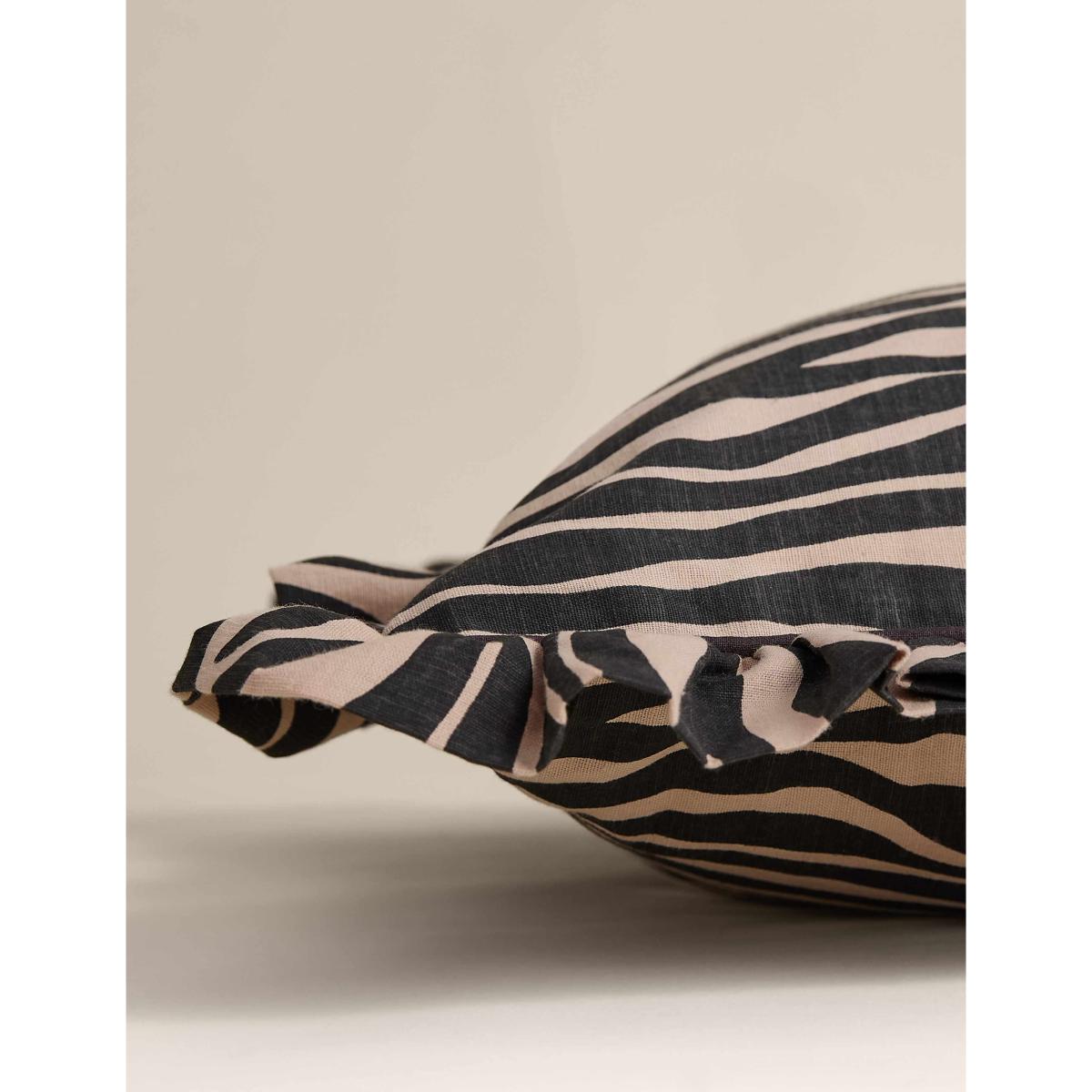 This cotton-rich cushion is designed to stand out with its bold zebra print. Blended with natural flax for a softly textured feel. A frilled edge adds a playful finish.