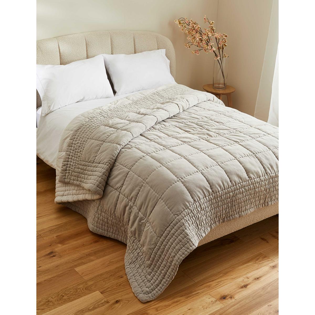 An intricate hand-stitched design gives this quilted bedspread a luxurious charm. It's made with pure cotton velvet to bring soft, sumptuous texture to your bed, while the warm filling enhances the plush feel. Neat border trims complete the premium look.