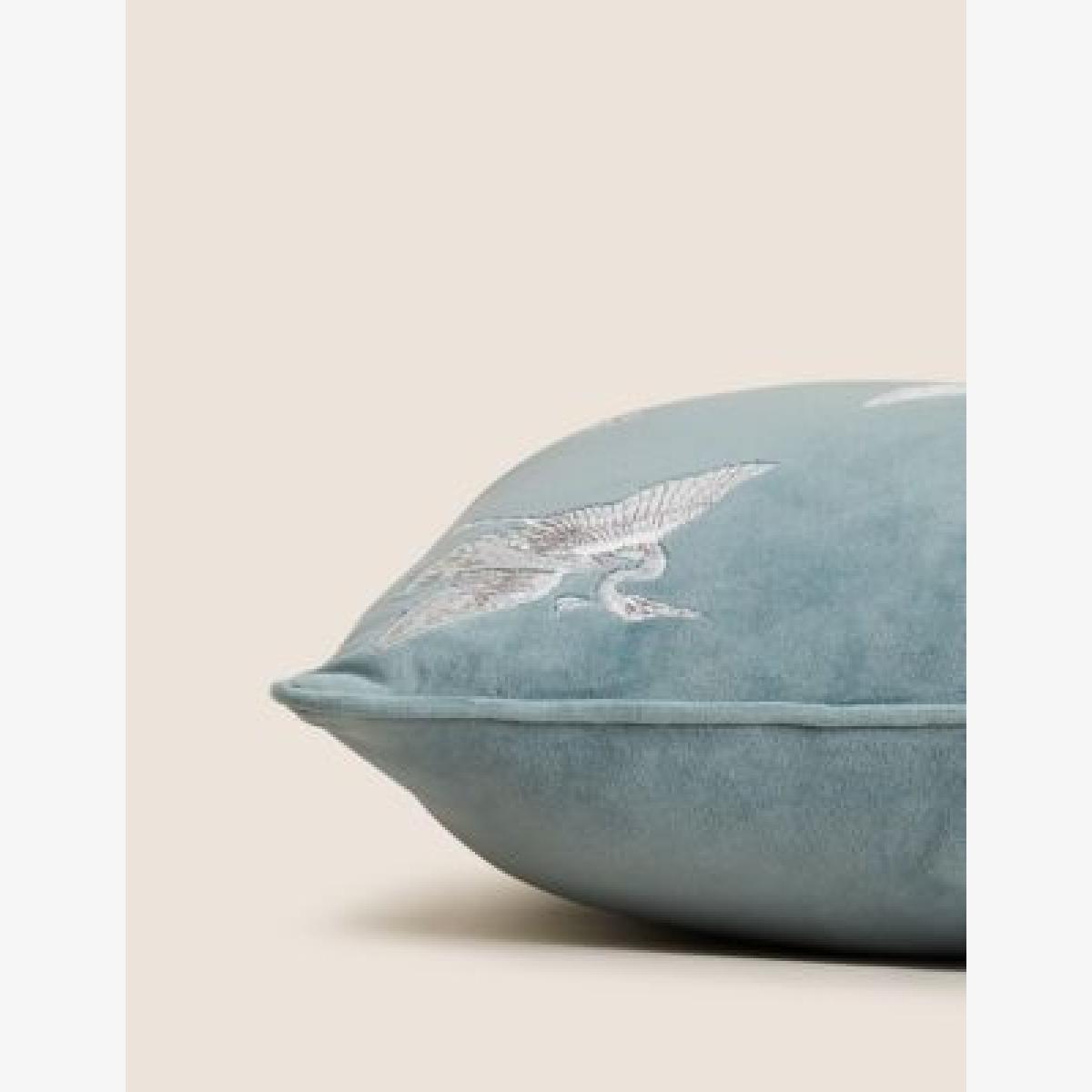 M&S Crane Embroidered Bolster Cushion - Duck Egg, Duck Egg,Navy,Blush,Light Grey