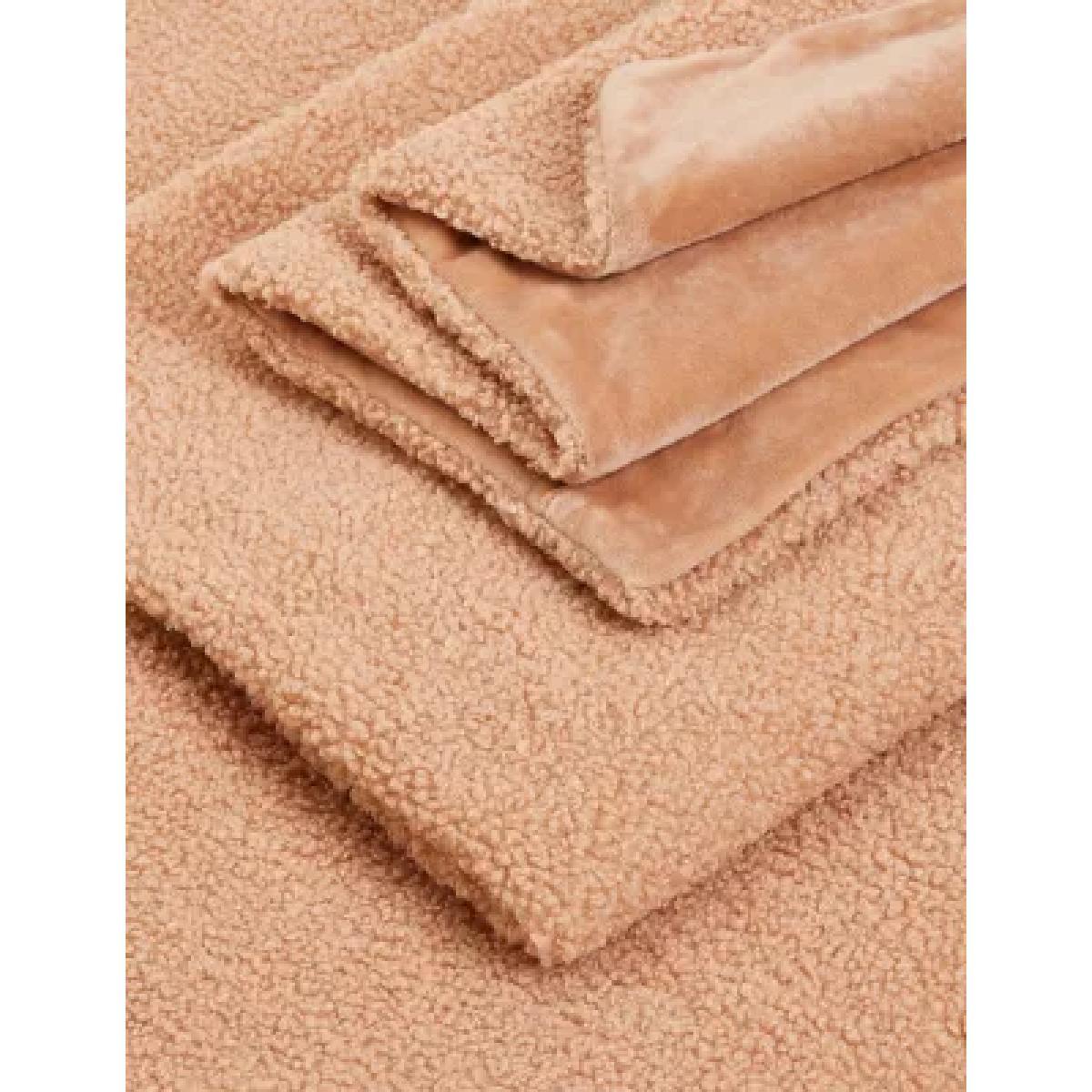 M&S Curly Teddy Fleece Bedding Set - DBL - Caramel, Grey,Caramel