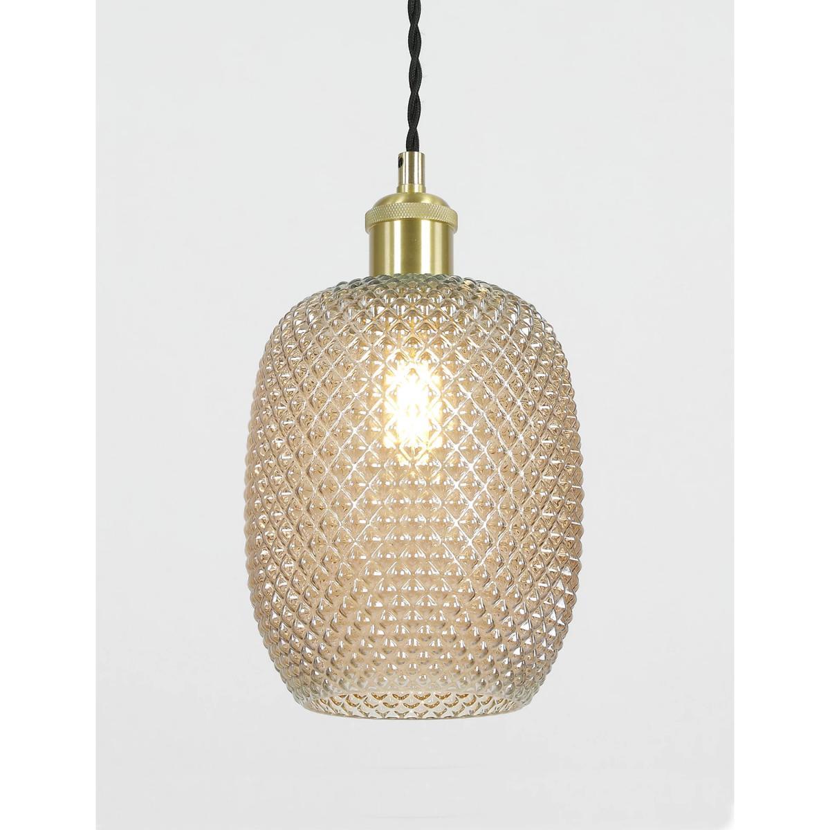 I love this pressed glass shade because it adds a bit of vintage charm while remaining versatile enough for contemporary interiors. Its champagne hue and textured glass make it an elegant focal point, ideal for living rooms, bedrooms, or even hallways. It works well in spaces with soft, neutral palettes or those featuring metallic accents, as it helps to reflect light and create a warm, inviting glow. For styling, consider pairing it with brass or gold fixtures to enhance its luxe feel, and keep the surroundings simple to let the shade take centre stage. Practical tip: hanging it at varying heights can add visual interest in open-plan spaces.