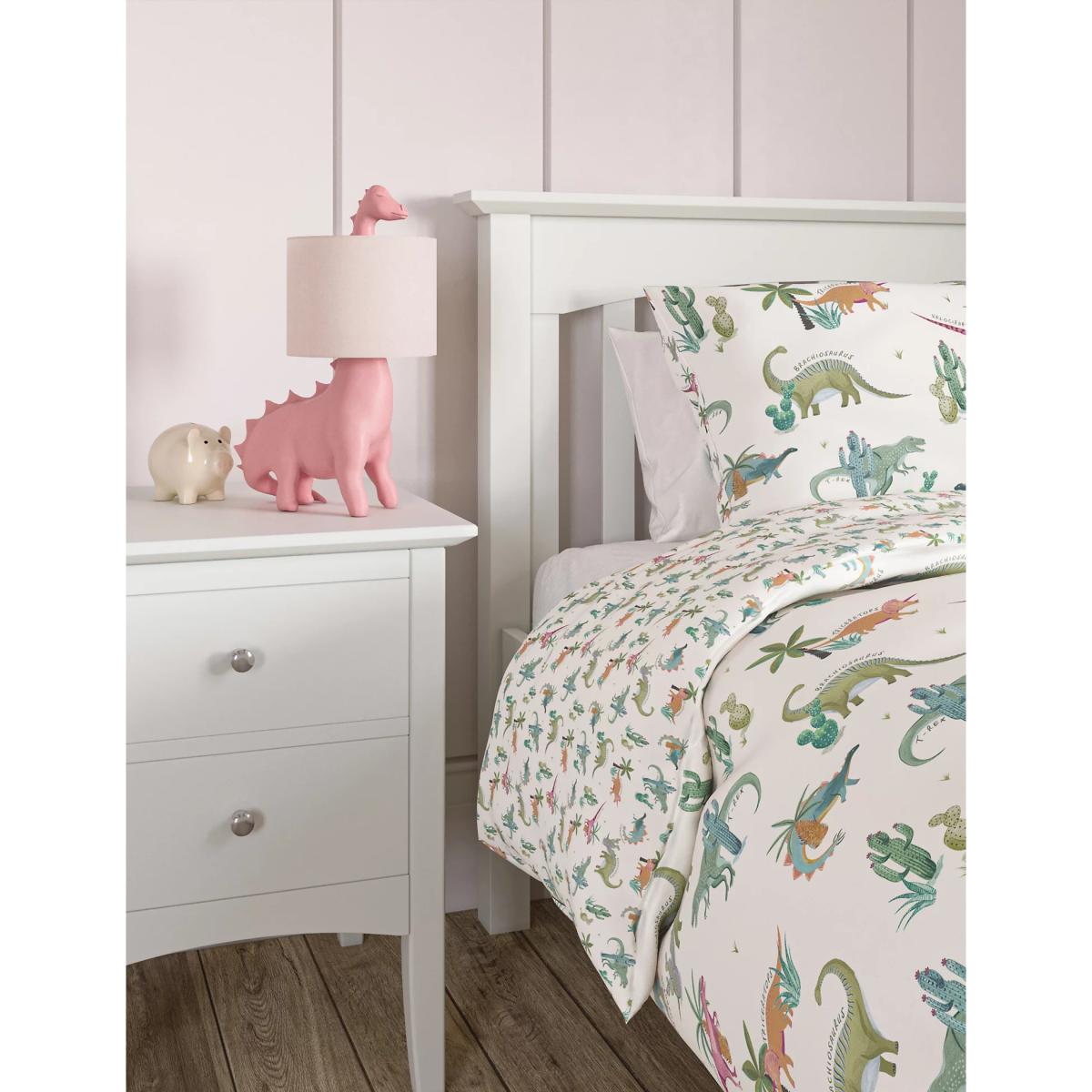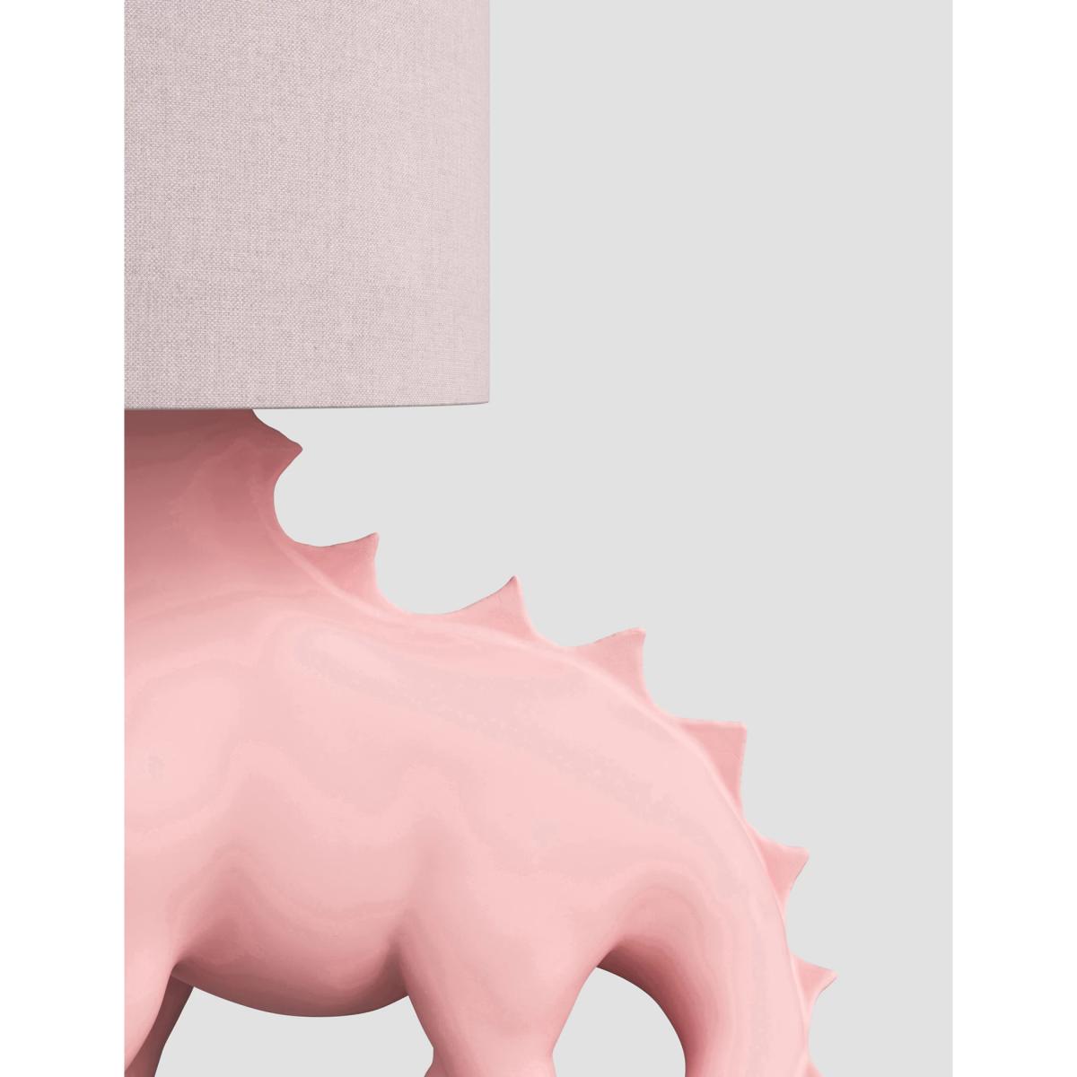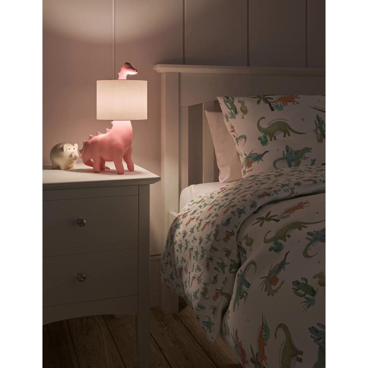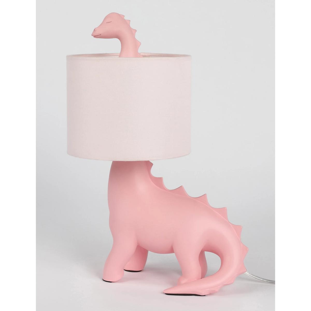 This roarsome table lamp will add a playful vibe to kids' bedrooms. The base is designed in the shape of a brachiosaurus dinosaur with a sleek matte painted finish in either green or pink. The integrated LED means you do not need a separate bulb. It comes with a clear plastic cable for a discreet look.