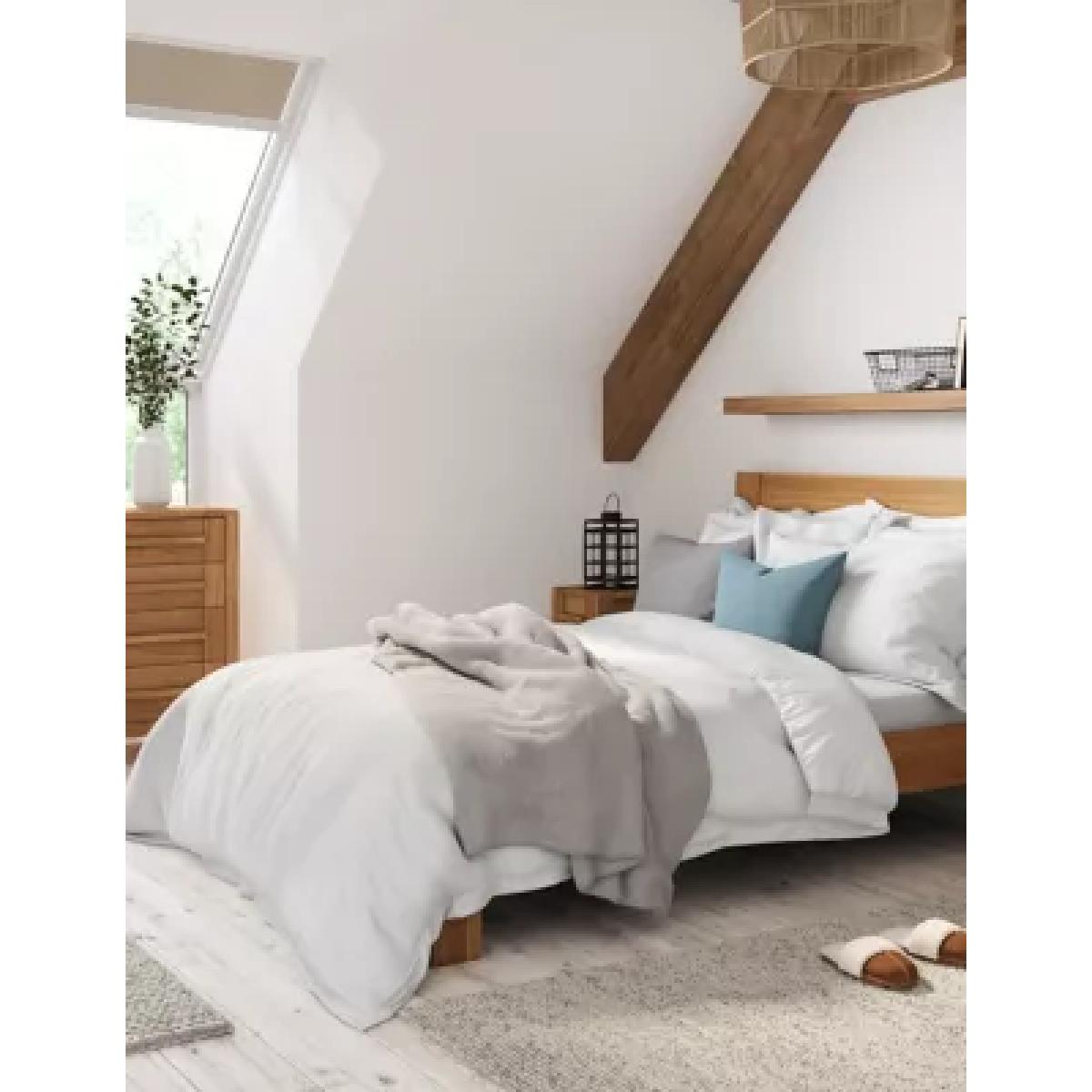 This bedding set is a classic no-brainer for anyone seeking understated luxury. The 400-thread count percale cotton offers a crisp, cool feel that's perfect for a restful night’s sleep. Its neutral shades of white and light cream make it highly versatile, working especially well in Scandi-inspired or minimalist interiors, but also effortlessly blending into more traditional or rustic schemes. For styling tips, consider layering with textured throws or accent cushions in muted tones or subtle patterns to add depth without overwhelming the look. It’s an excellent choice for those who appreciate simplicity and quality; a staple that can be dressed up with accessories or kept clean and understated depending on your decor style.