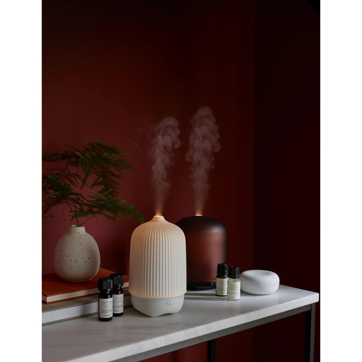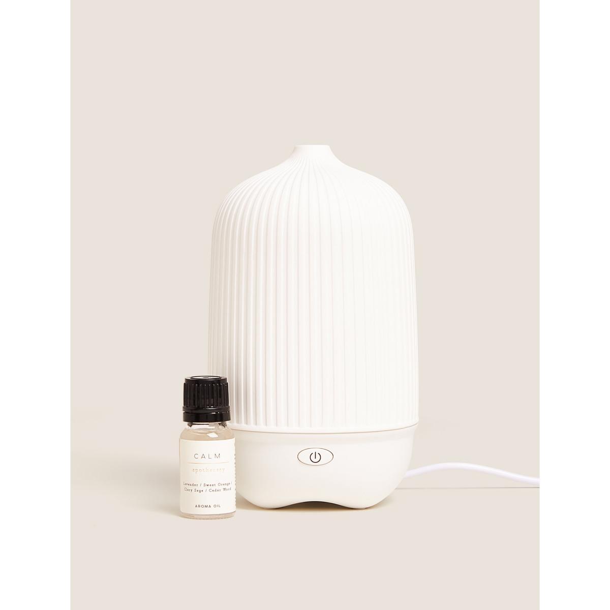 Instantly infuse your living space with a soothing aroma and delicate mist with this luxurious electric ultrasonic diffuser. Use with the calm fragrance oil included, or with any of your favourite Marks and Spencer fragrance oils depending on your mood. Complete with auto stop feature and warm illuminating LED light, this sleek and silent diffuser will enhance your home for up to six hours.