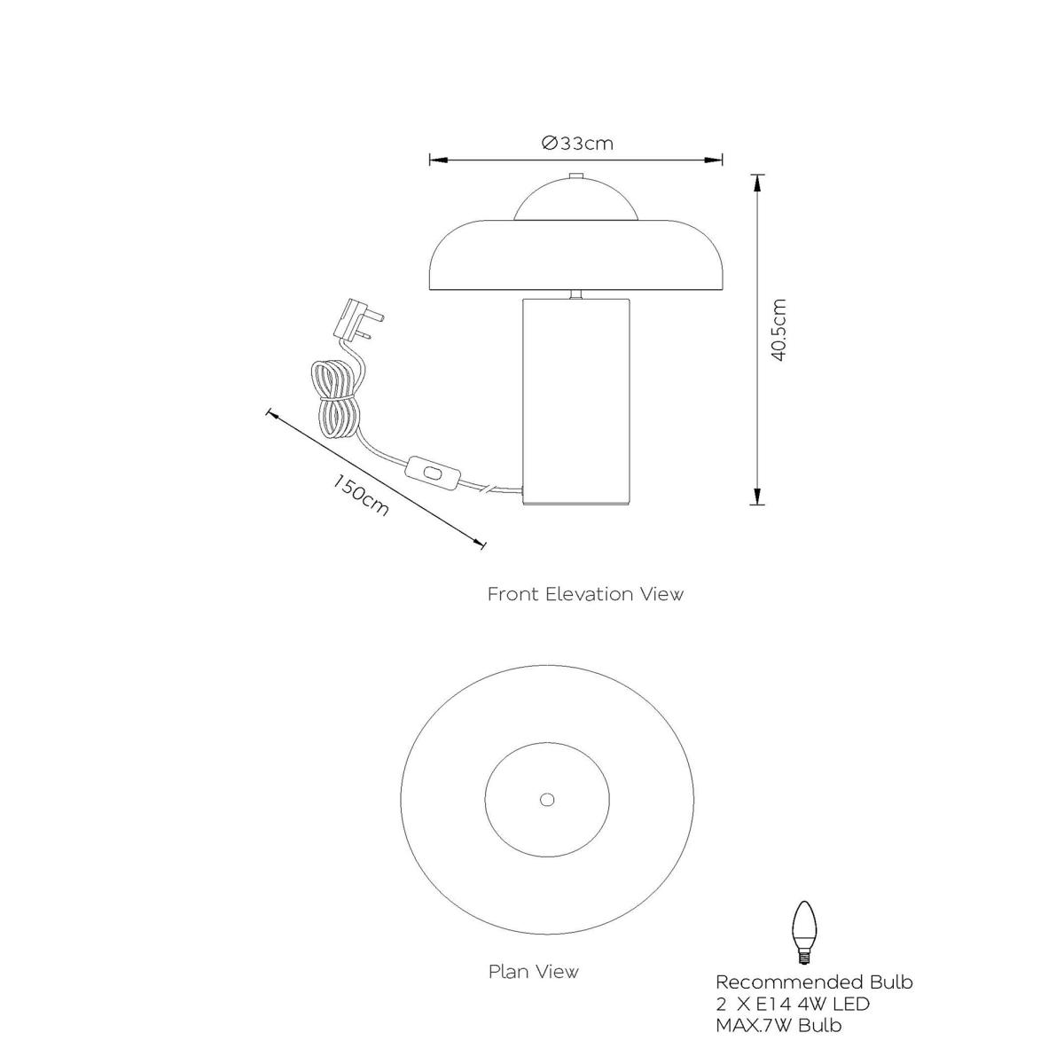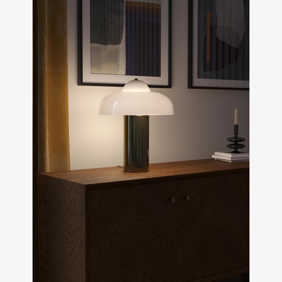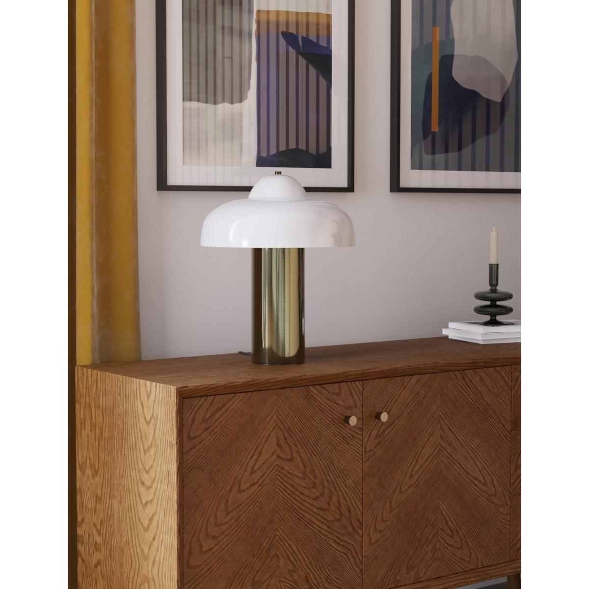 Illuminate your space with the sophisticated Eloise table lamp. Its cylindrical metal base gives a modern look and ensures the lamp will sit sturdily on a range of different surfaces. The domed glass shade will add a stylish edge to your interior design scheme.
