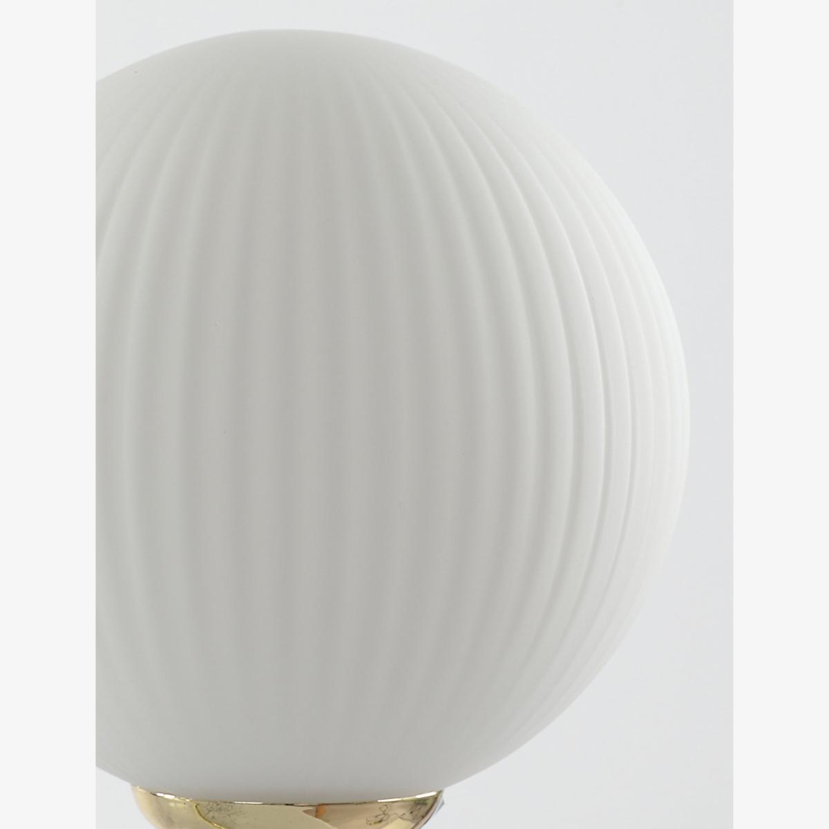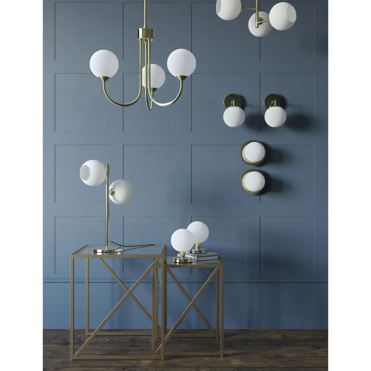 The Emilie ceiling light is a statement piece you'll notice as soon as you enter the room. This contemporary design can be hung as a flush or pendant light. Crafted from curved, polished metalwork with a trio of ribbed glass globe shades, this piece will fill your space with a warm, welcoming glow. Match it with other designs from our ribbed glass collection for coordinating décor.