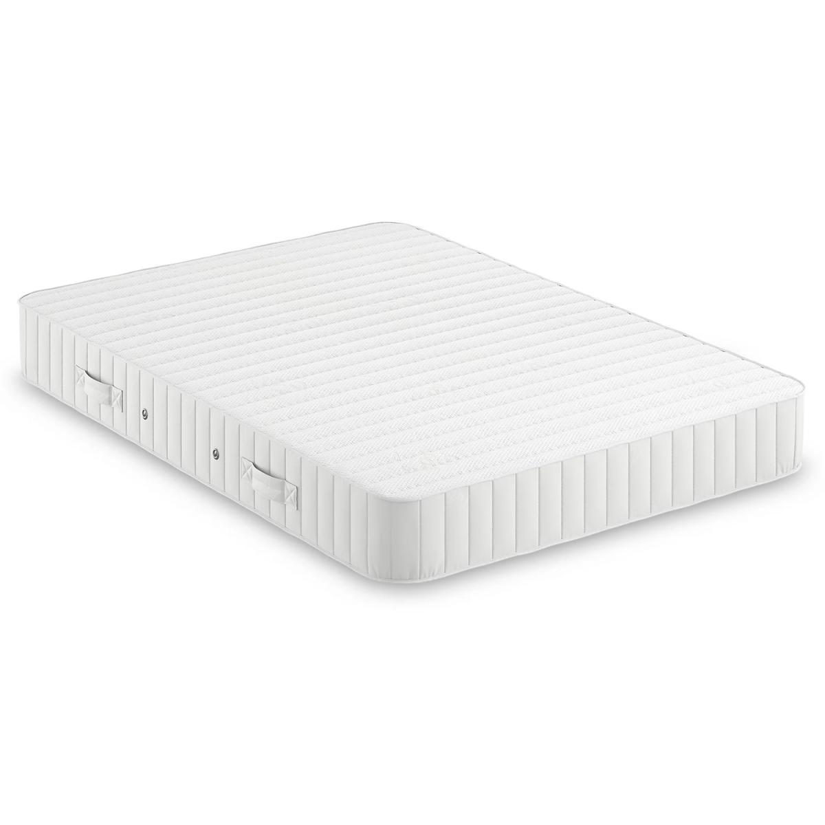 Sink into the comfort of our Essential open coil mattress that’s sure to have you drifting off to sleep with ease. Made with a brilliant memory foam top, it responds and contours to your body shape for a cosy and supportive feel, seeing you through night after night of peaceful slumber. Our natural mattress is antibacterial for an extra hygienic touch, while the anti-allergenic finish ensures you’ll feel your very best. It comes complete with four convenient handles for easy turning and transportation as well as eight silver vents.