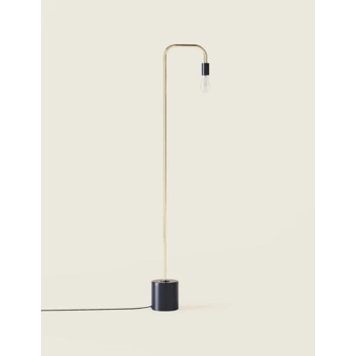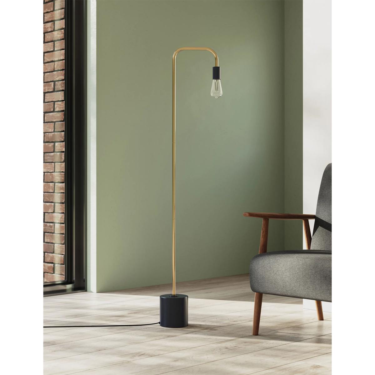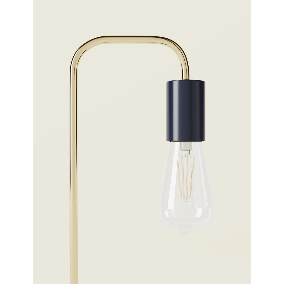 Inspired by Scandinavian design, our exposed bulb floor lamp will add a minimalist vibe to your home. It features a satin brass and navy blue metal frame with a on-trend clear Edison-style bulb for a modern aesthetic.
