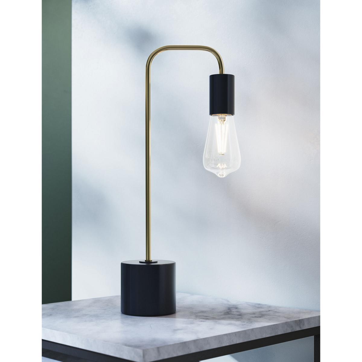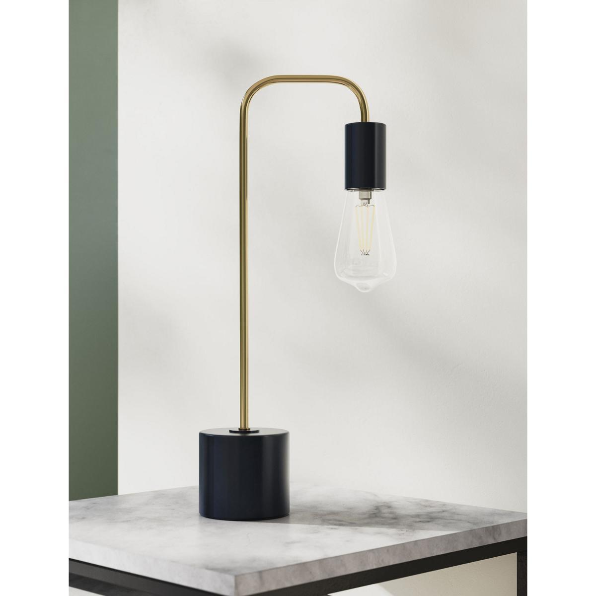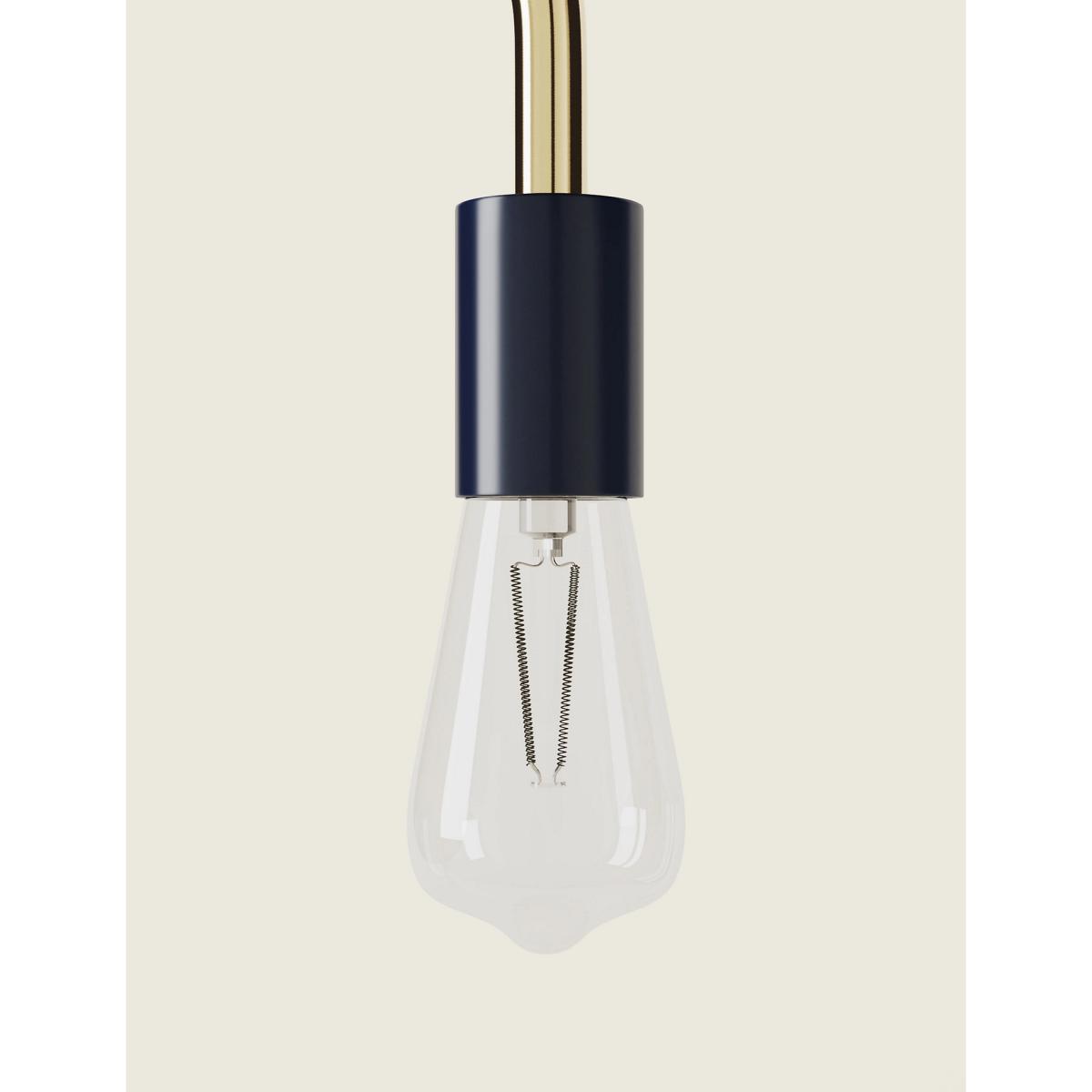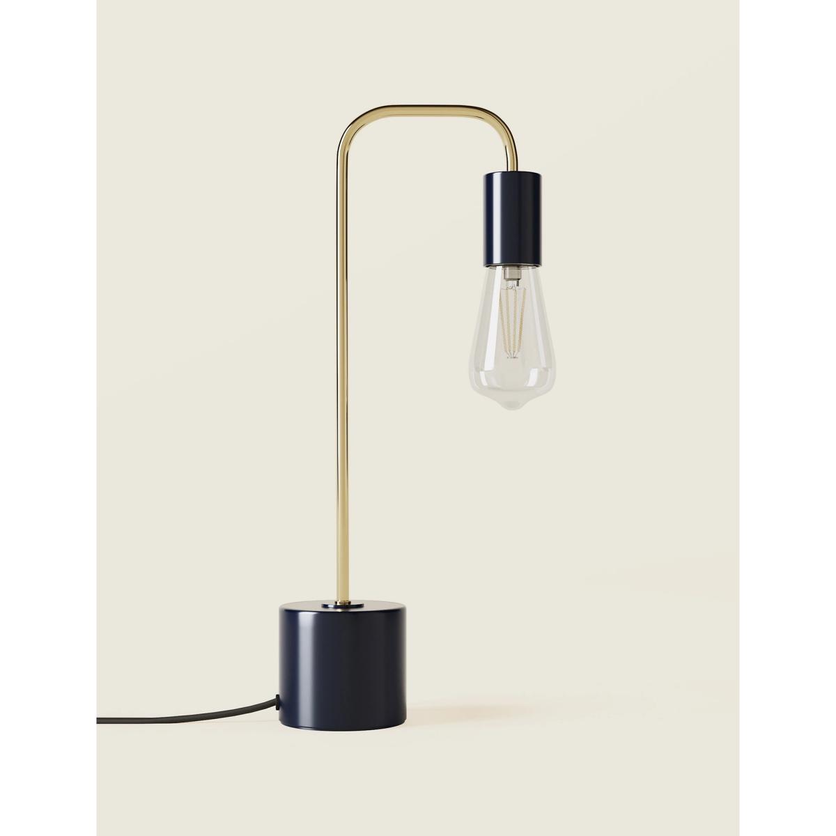 I love this exposed bulb lamp for its modern yet versatile look, perfect for adding an industrial touch without feeling too cold. Its navy finish makes it an easy fit for contemporary or minimalist interiors, pairing well with natural woods, concrete, or metallic accents. It's great as a bedside or desk lamp, where the curved design can help direct light efficiently. For styling, try grouping it with other navy or brass-toned accessories to create a cohesive look, or keep it as a statement piece on a side table or console. Its simple, uncluttered design makes it adaptable across different schemes, adding both function and style.