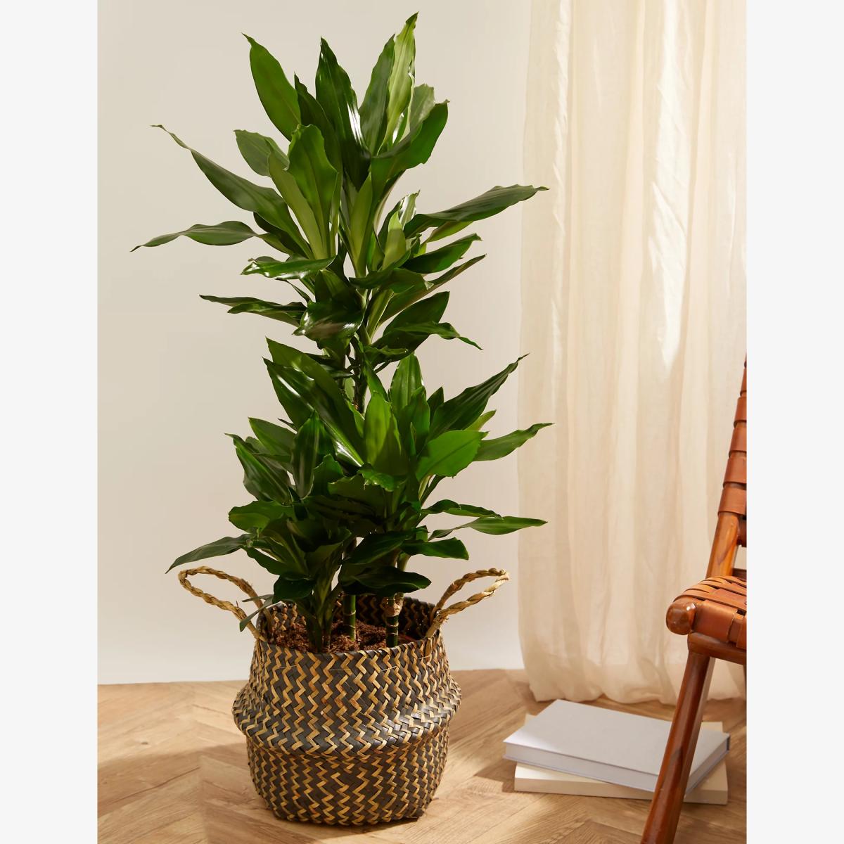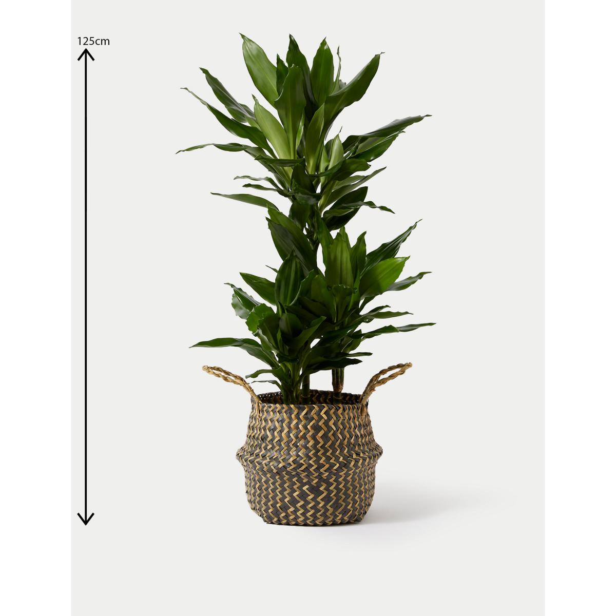 This extra large Dracaena plant is a striking and majestic addition to any interior space. And when nestled within a woven basket it becomes a captivating centerpiece that adds a touch of natural elegance to its surroundings. Colours may vary slightly throughout the season.