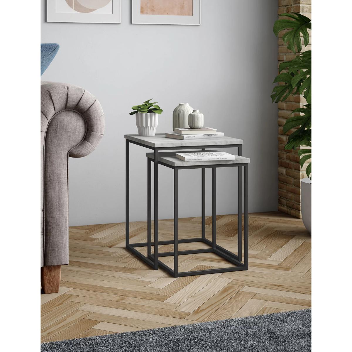 M&S Farley Nest of Tables - White, White,Marble