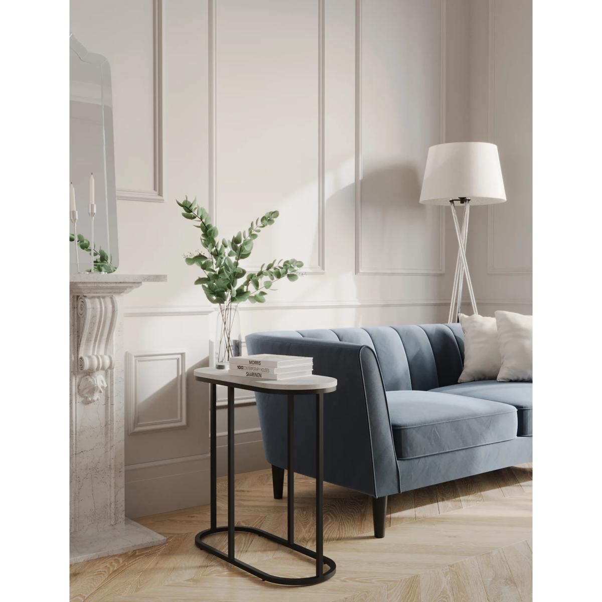 I really like this side table because of its sleek oval shape and minimalist black frame, which makes it versatile enough for a range of interiors from modern to industrial. It works particularly well in smaller living spaces or beside a bed, where its slim profile won’t feel bulky. The marble top adds a touch of sophistication and contrast, making it an ideal spot for a lamp, a book, or decorative accessories. For styling tips, consider pairing it with neutral-toned furniture or layering colours and textures nearby to create visual interest. It’s also a practical addition as it’s easy to move around and fits comfortably next to sofas or armchairs, making it both functional and design-forward.
