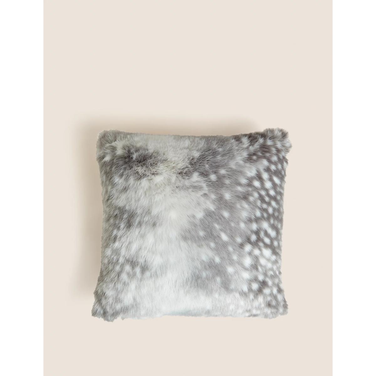 M&S Faux Fur Snow Leopard Cushion - Grey Mix, Grey Mix