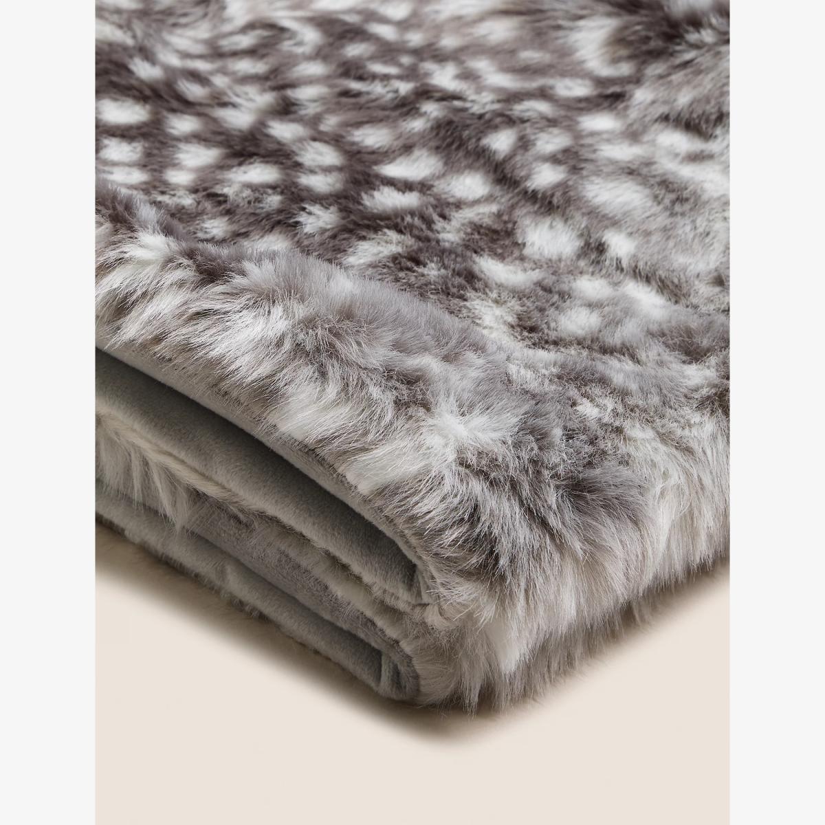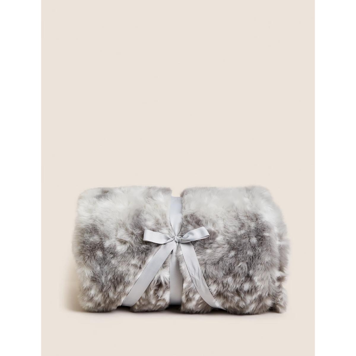 M&S Faux Fur Snow Leopard Throw - Grey Mix, Grey Mix
