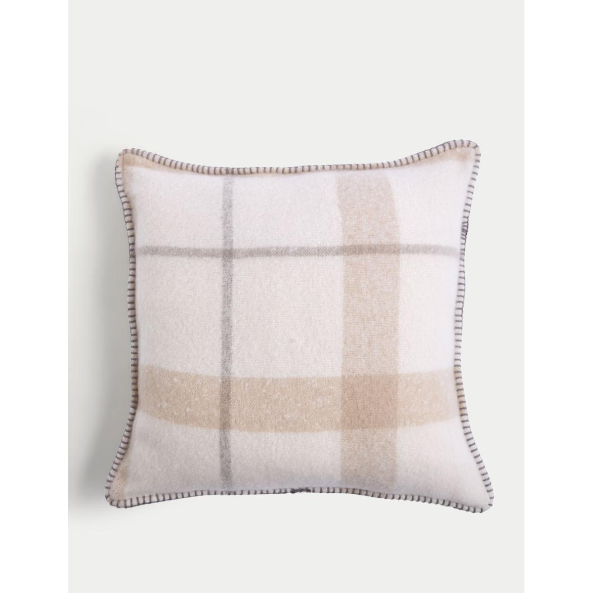M&S Faux Mohair Checked Cushion - Green, Cream,Green