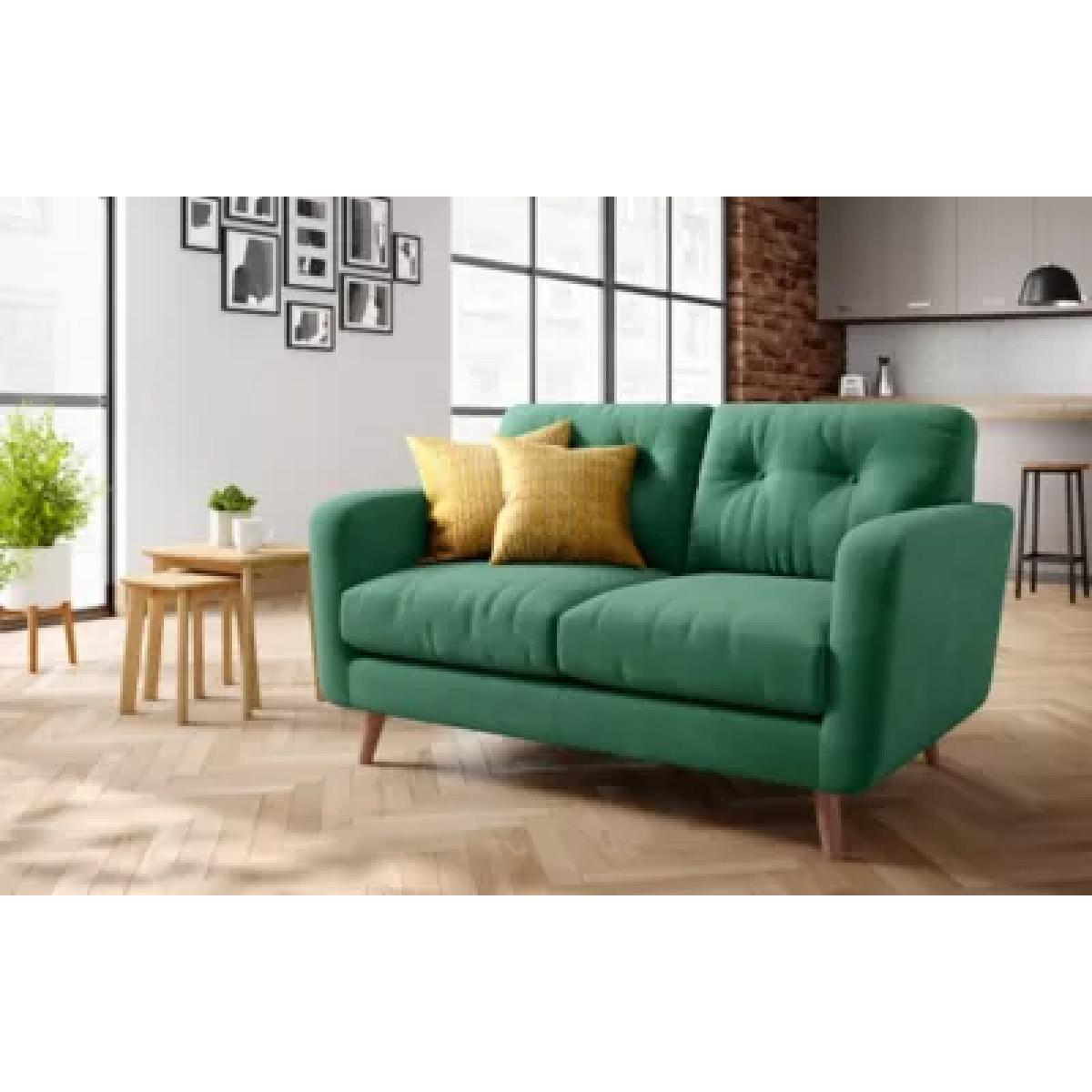 I love this sofa for its classic mid-century silhouette combined with a vibrant green fabric, making it a real focal point in any room. It works particularly well in Scandi or contemporary interiors where clean lines and bold colours are key. To style it effectively, consider pairing it with neutral or soft-toned accessories to let the sofa stand out, and add textured cushions for extra comfort and visual interest. Its size makes it versatile for both small and larger living spaces, and choosing simple wooden or metal legs can keep the look fresh and modern. Remember, a standout piece like this can anchor a room and set the tone for the rest of your scheme.