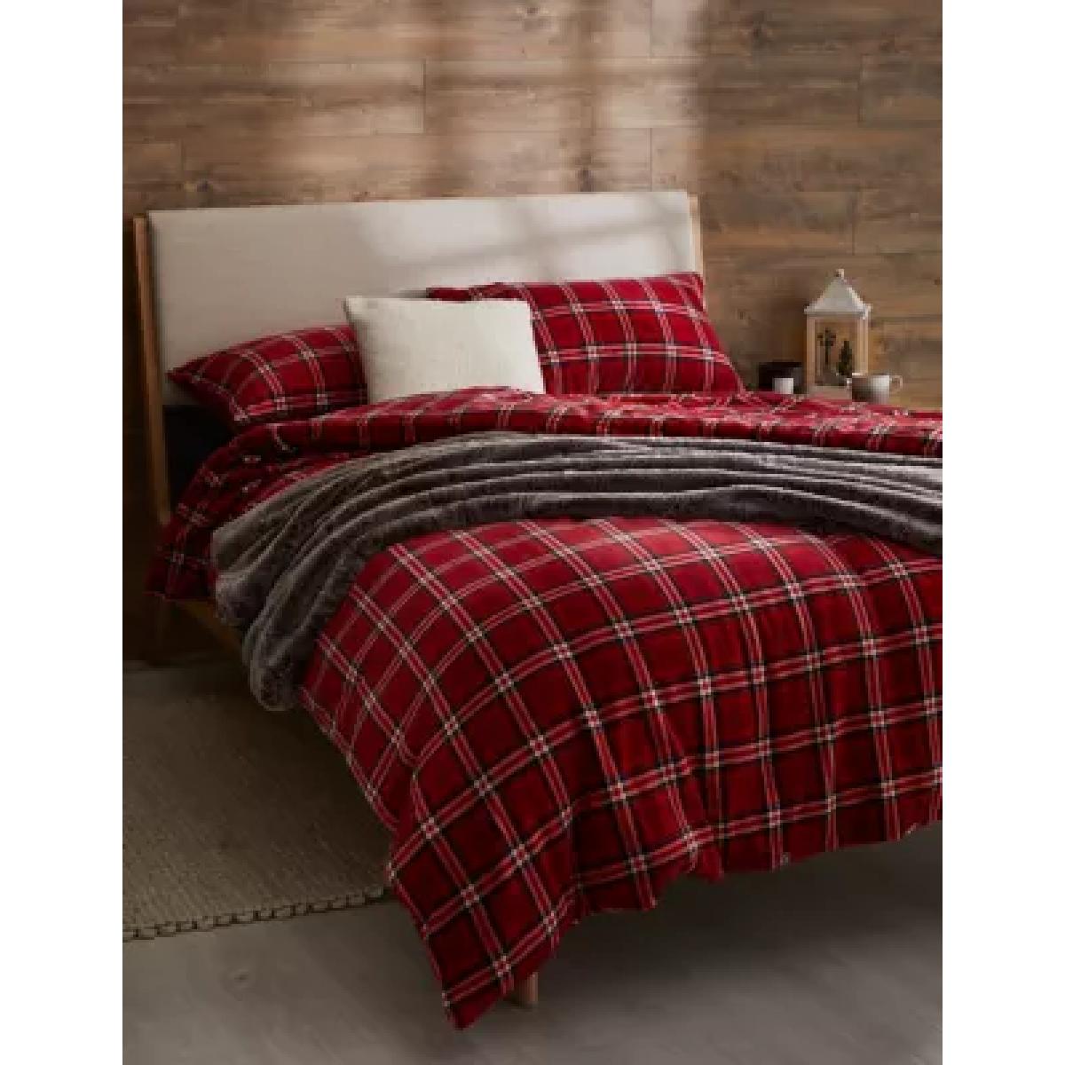 M&S Fleece Checked Bedding Set - SGL - Red Mix, Red Mix
