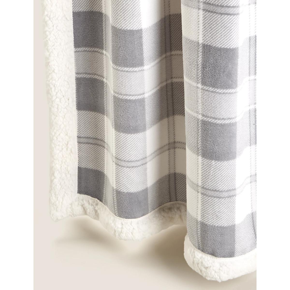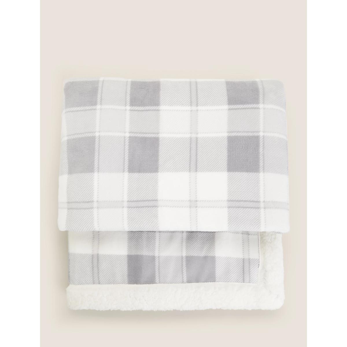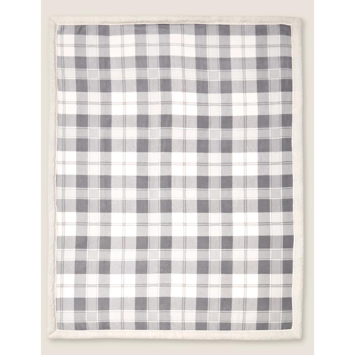 M&S Fleece Checked Throw - Large - Grey, Grey