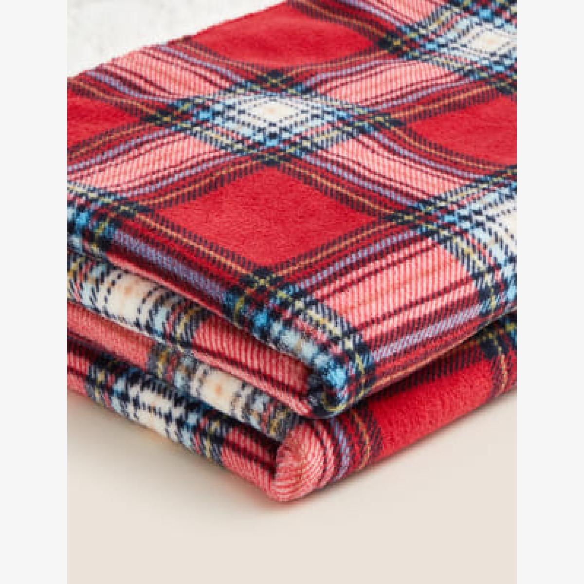 M&S Fleece Checked Throw - Large - Red Mix, Red Mix,Cream Mix