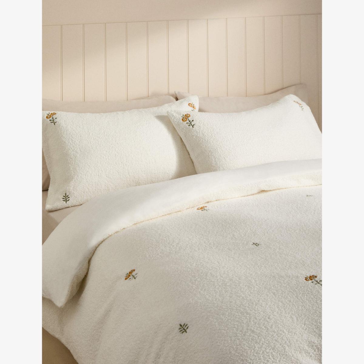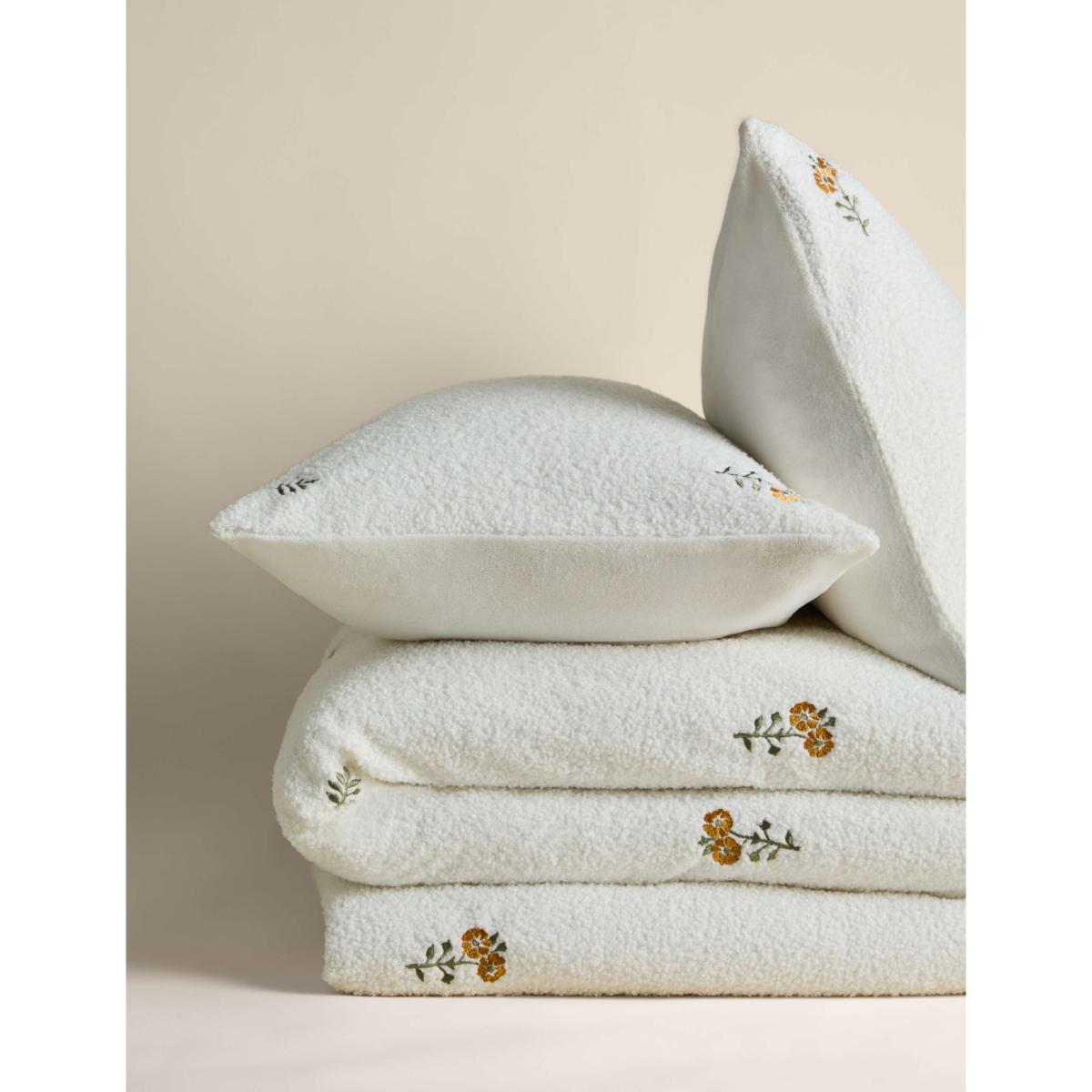 M&S Fleece Embroidered Bedding Set Ecru Mix