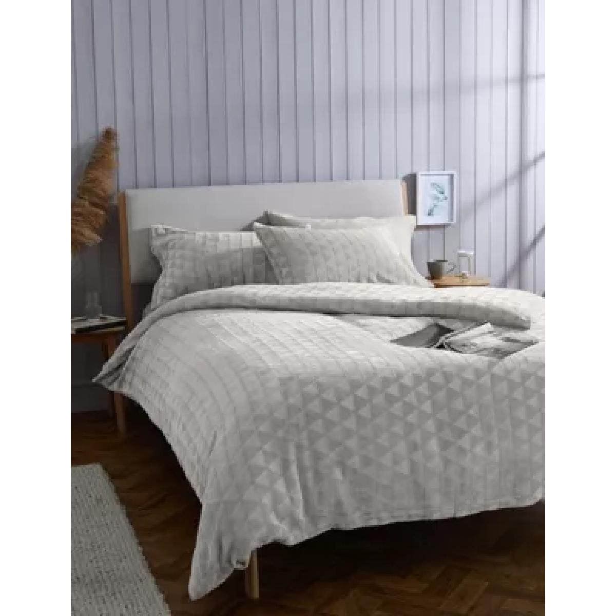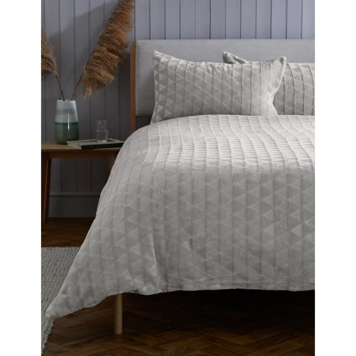 M&S Fleece Geometric Bedding Set - 5FT - Grey, Grey