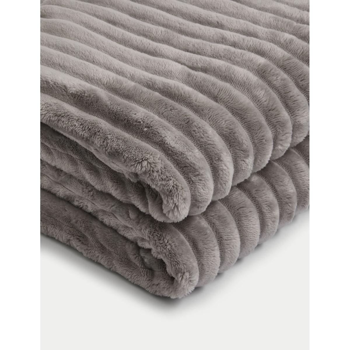 M&S Fleece Ribbed Throw - MED - Grey, Grey