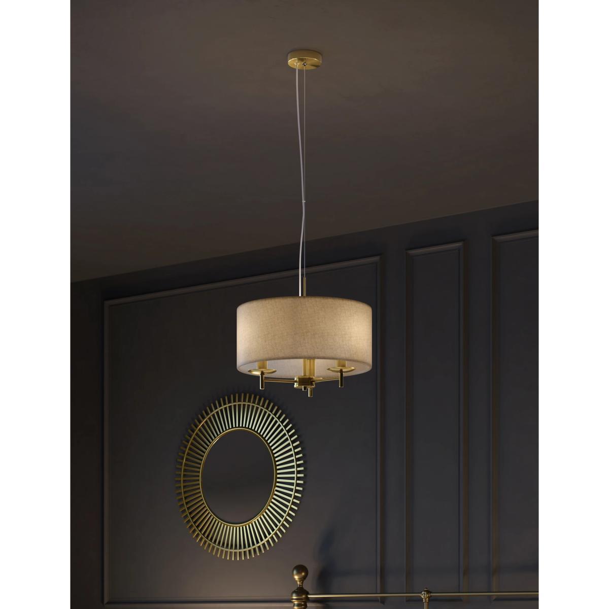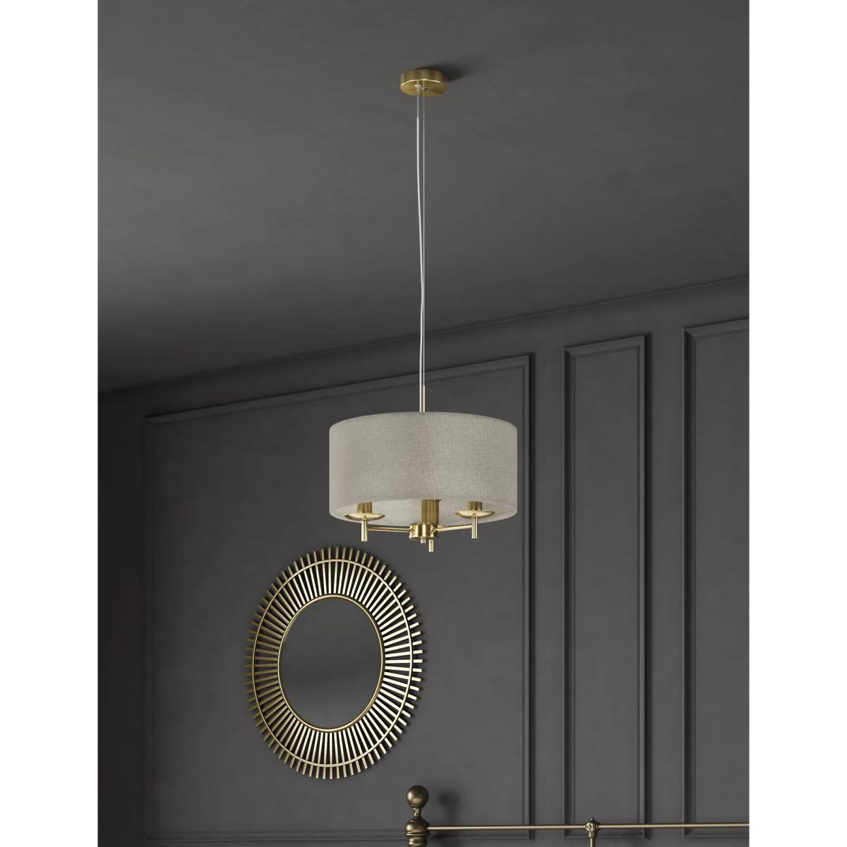 The Fleur pendant light is an on-trend piece, combining a linen-look drum shade with the classic style of a candelabra. This ceiling light's polished finish will fit seamlessly into any space in your home.