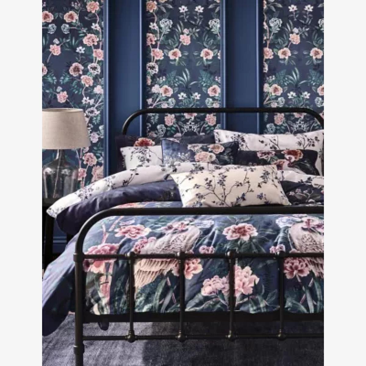 I love this bedding set for its bold, chinoiserie-inspired floral print combined with its rich navy mix, making it a real statement piece. It works particularly well in classic or eclectic interiors, adding a touch of sophistication and historical charm. To style it effectively, pair with neutral or subtly textured bed linens to let the pattern stand out, and keep accessories minimal to avoid overwhelming the look. This set is versatile enough to be the centrepiece in a serene bedroom or to add depth in a more layered, maximalist scheme. Practical tips include choosing understated cushions and throws in complementary colours to create a cohesive yet interesting space.
